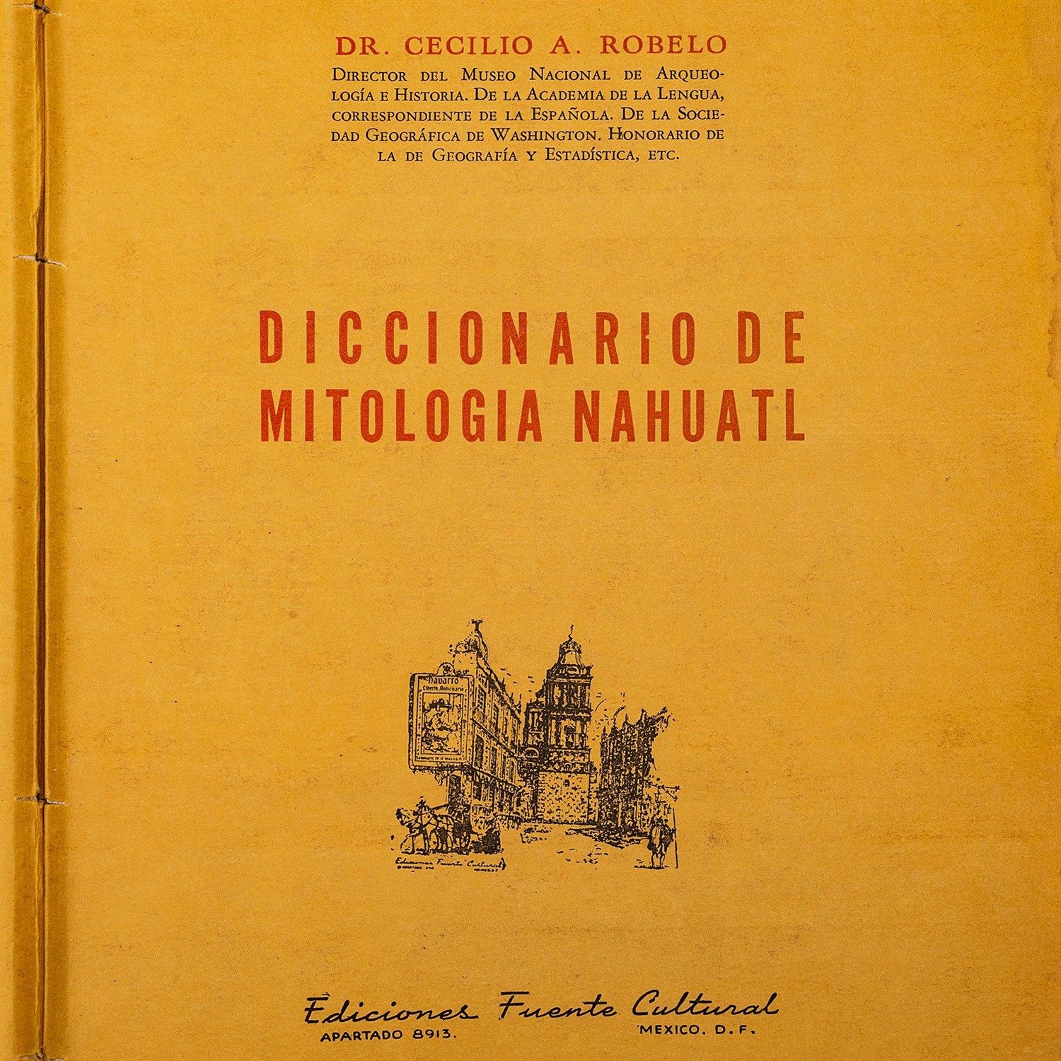 ROBELO, CECILIO A. DICCIONARIO DE MITOLOGÍA NÁHUATL. MÉXICO: LIBRERÍA NAVARRO, 1951. 4o. marquilla, 487 p. Edición de 500 ejemplares. Conserva pastas originales en rústica. Encuadernado en pasta dura.