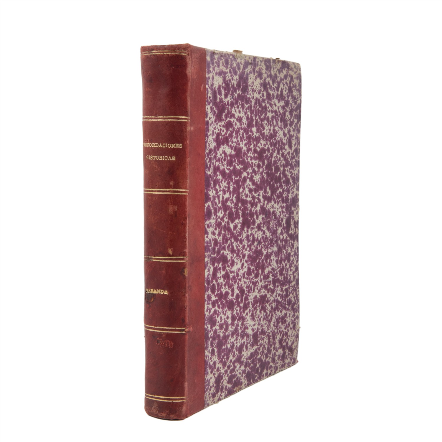 BARANDA, JOAQUÍN. RECORDACIONES HISTÓRICAS. MÉXICO: TIP. Y LIT. LA EUROPEA - TIP. ECONÓMICA, CA. 1907. 4o., XX + 614 p. + 1 h. Tomo I. Ex Libris de Joaquín Cortina Goribar. Encuadernado en pasta dura, lomo en piel. Estimado $1,800-4,000