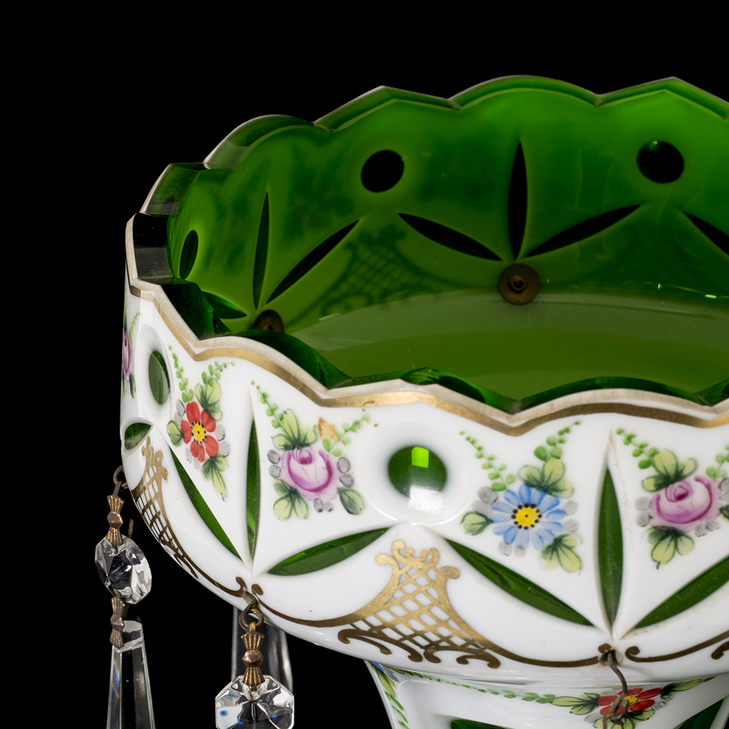Elaborada en cristal Overlay color blanco y verde.