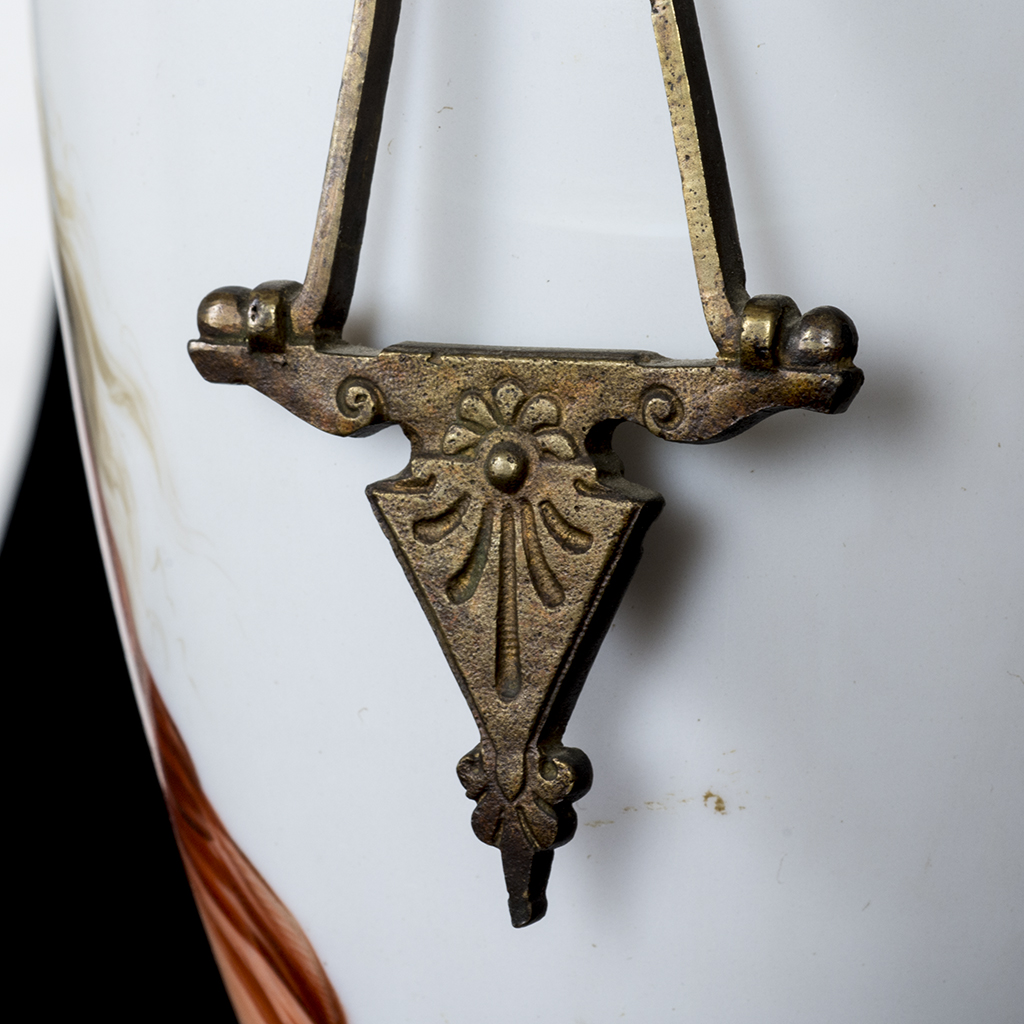 Lámpara de mesa. Siglo XX. Elaborada en bronce y vidrio lechoso. Para 1 luz. Decorada con veneras, roleos e imagen de musa mitológica. Presenta detalles de conservación, marcas y desgaste. Dimensiones: 37 cm. Estimado $ 1,500-2,000