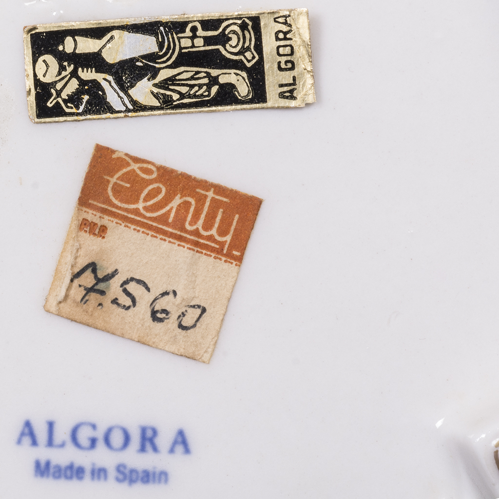 Querubines músicos. España. Siglo XX. Elaborados en porcelana policromada Algora. Con esmalte dorado. Sobre base oval. Presentan detalles de conservación, despostillados, faltantes, marcas y desgaste. Dimensiones: 26 x 17.5 x 11 cm. Estimado $ 1,200-1,800