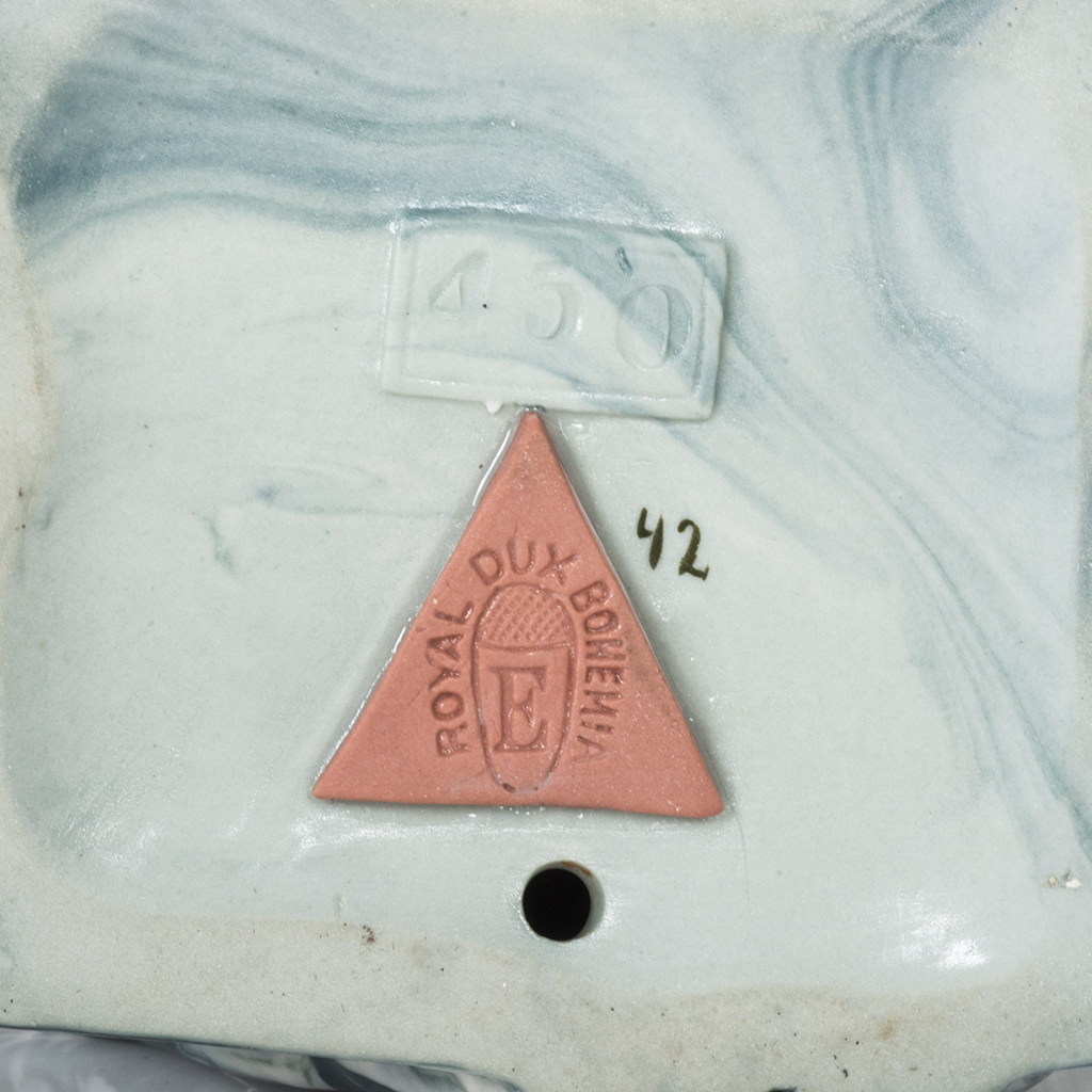 Melpómene. Checoslovaquia. Siglo XX. Estilo Art Nouveau. Elaborada en porcelana policromada y vidriada, acabado iridiscente. Presenta detalles de conservación y faltantes. Dimensiones: 22.5 cm. Una de las Nueve Musas, Melpómene, la melodiosa, es la musa de la tragedia. Porta una máscara trágica y una daga. Estimado $ 1,500-2,000