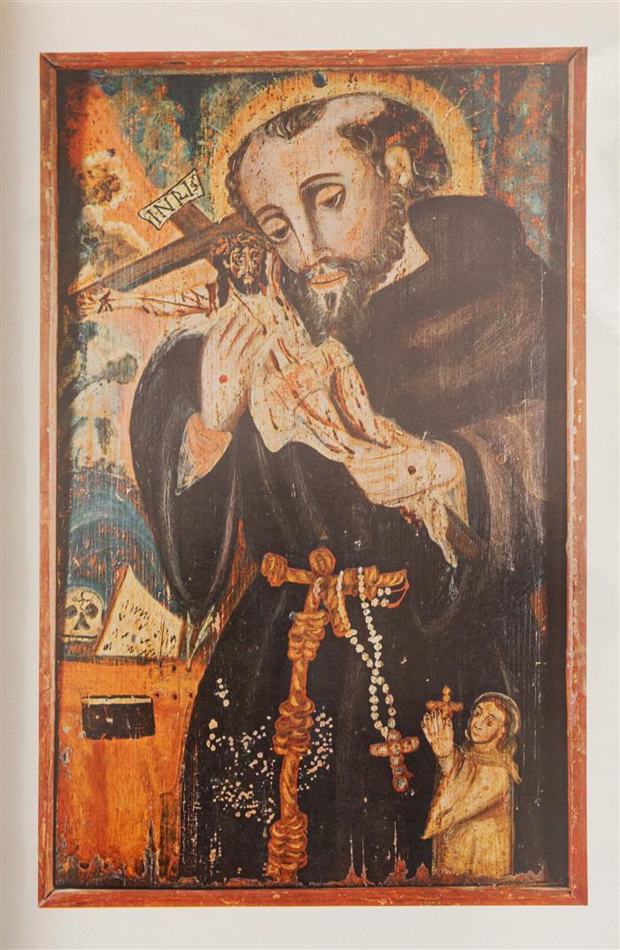 JAVIER PÉREZ DE SALAZAR (EDITOR) LA PINTURA MEXICANA SIGLOS XVI - XVII / SIGLO XIX MÉXICO: EDITOR JAVIER PÉREZ DE SALAZAR fo. doble, XXXVI p. + 100 láminas + 103 fols.; XVI p. + 100 láminas + 103 fols. Primera edición. Colecciones particulares. Tomos I y III. Tomo I: Siglo XVI - XVII. Introducción de José Luis y Javier Pérez de Salazar, textos de Justino Fernández y Francisco de Maza. Edición de 2,000 ejemplares numerados, ejemplar número 1474. Conserva caja original. Tomo III: Siglo XIX. Primera parte. Prólogo de Justino Fernández. Edición de 1,000 ejemplares numerados, ejemplar número 298. Folios 98 al final encuadernados al réves Encuadernados en pasta dura en tela, con títulos en placa de bronce Piezas: 2 Estimado $2,500-6,000