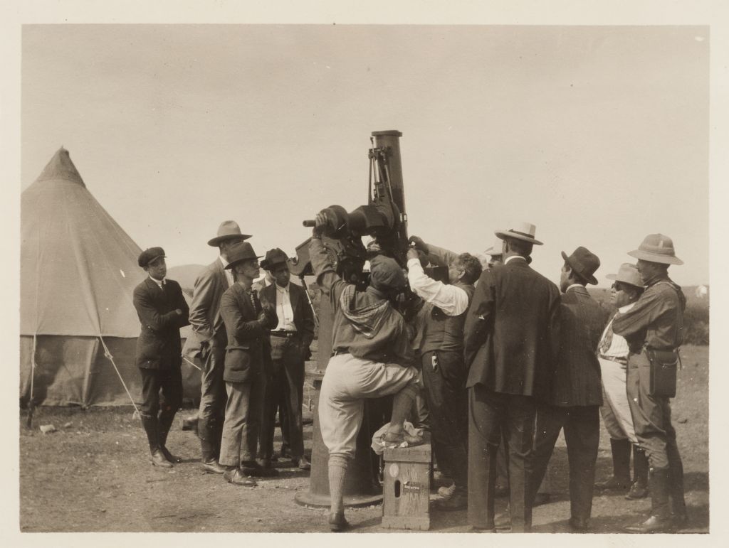Expediciones Científicas Alemana y Americana en Yerbanís y Pasaje, Durango. Eclipse de 1928. Fotopostales, 14 x 9 cm. (2), 9 x 14 cm. (6) y 8 x 11 cm. (2). Seis con notas manuscritas sobre los campamentos de las expediciones e identificando al gobernador del Estado, al jefe de la expedición alemana Hen Lidendorff, al agente general de agricultura y fomento en Durango, al ingeniero Joaquín Gallo, al jefe de la expedición americana Mr. Miller, así como al personal de cada expedición y alumnos del Instituto Juárez. Una con puntas recortadas. Piezas: 10. Este elipse causó una gran expectación a nivel mundial, debido a que se trataba de demostrar la teoría de Einstein que establece que la luz sufre una desviación al pasar por un cuerpo de bastante masa que la atraiga y, por lo tanto, se quería investigar en este eclipse si el rayo luminoso de una estrella se desvía debido a la atracción del sol. Para ello se reunieron 3 expediciones científicas con equipo muy avanzado para grabar el fenómeno para su posterior estudio. Estimado $6,000-8,000