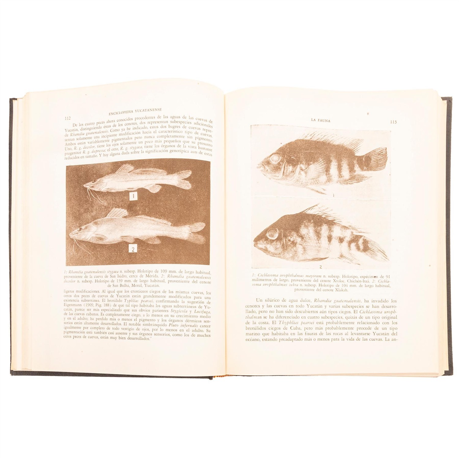 4o., 527; 575; 800; 924; 853; 578; 557; 1022 p. Primera edición. Tomo I: Introducción, geografía física, fauna y flora. Cofia deteriorada, con pasta gastada Tomo II: Época Maya. Historia general, organización social, religiosa, política, económica, artes y ciencias. Guía arqueológica de Chacmul - Tun, Labná, Sayil, Kabah, Uxmal, Chichén - Itza y Tulum. Tomo III: Historia política, historia de la legislación, historia de las comunicaciones, historia de la Industria henequenera. Tomo IV: Historia de la beneficencia, la educación, la medicina, la música, la arquitectura, la pintura, el dibujo, la escultura y las artes menores. Tomo V: Historia de la imprenta, el periodismo, el teatro, la literatura dramática, el cinematógrafo, la poesía, la novela, el humorismo, el costumbrismo, la oratoria, la crítica, el ensayo y la historiografía. Tomo VI: Yucatán actual. Los indígenas y su cultura, gramática maya, los mestizos, los blancos, regionalismos lingüísticos, higiene general, organización política, económica, etc. del estado. Tomo VII: Biografías de A. Quintana Roo, P. Sainz de Baranda, L de Zavala, M. C. Rejón, J. M. Gutiérrez de Estrada, J. Sierra Reilly, J. C. Cano, P. Escudero y Echanove, I. A. Montiel y Duarte, J. Peón Contreras, J. Sierra Méndez, F. Sosa, J. Gamboa Guzmán, G. Ricalde Gamboa. Tomo VIII: Bibliografía General Yucatanense. Índices generales. lustrados con mapas, códices, fotografías (algunos a color y plegados). Encuadernados en pasta dura, en tela. Piezas: 8.