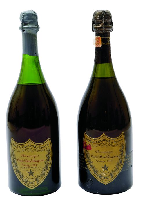 Cuvée Dom Pérignon. Champagne. Möet et Chandon. Épernay. Vintage. Años 1962 y 1969. Piezas 2 Estimado $1,500-2,000