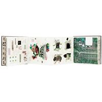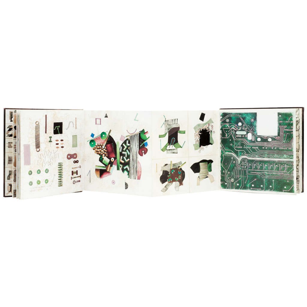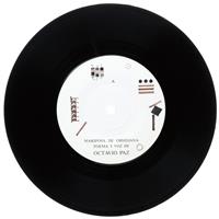 L - Paz, Octavio. Obsidian Butterfly / Mariposa de Obsidiana. Barcelona: Poligrafa, 1982. Contiene: - Códice Itzpapalotl: Libro de artista de 20 pliegos unidos en una sola tira, ilustrado por ambos lados por el artista británico Brian Nissen, con pastas duras. Con texto en inglés de Dore Ashton y traducción al español de Luisa Valenzuela, hoja plegada. - Mariposa de Obsidiana: Poema de Octavio Paz. - Traducción en inglés del texto de Paz por Eliot Weinburger. - Disco de vinilo. Lado A: "Mariposa de Obsidiana Poema y Voz de Octavio Paz" y lado B: "Canto de Itzpapalotl, música de Carles Santos". Dibujos de Nissen. "El códice es una forma narrativa visual en la que las imágenes aparecen interrelacionadas en secuencias. El formato es el de los manuscritos prehispánicos plegados en acordeón. El códice Itzpapálotl está estructurado en seis secciones, cada una de las cuales es una mutación estilística de la anterior". En caja. Uno de los libros-objeto más raros y poco conocidos de Octavio Paz, que conjuga poesía, música y pintura en una sola pieza. Estimado $8,000-10,000
