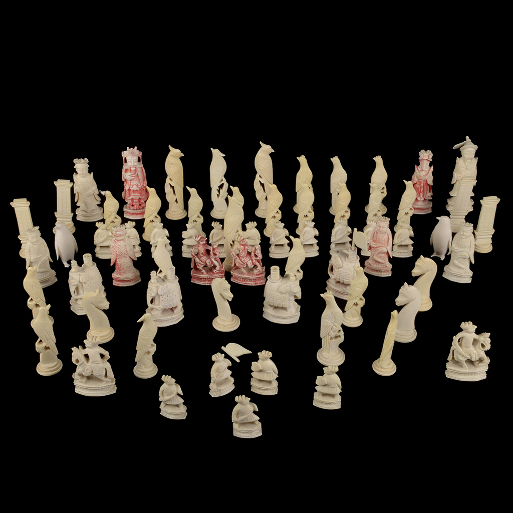 Lote de miniaturas. China. Siglo XX. Tallas en marfil. Diferentes tamaños. Consta de: aves, personajes, entre otros. Presentan detalles de conservación, restauraciones, faltantes, fisuras y piezas móviles. Dimensiones: 10 cm. (mayor). Piezas: 65 Estimado $10,000-15,000