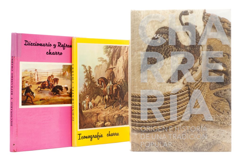 IJ - Castruita Padilla, Jaime / Islas Escárcega, Leovigildo - García Bravo y Olivera, Rodolfo. Charrería, Origen e Historia de una Tradición Popular / Diccionario y Refranero Charro / Iconografía Charra. a) Castruita Padilla, Jaime (Coordinación). Charrería, Origen e Historia de una Tradición Popular. México: Federación Mexicana de Charrería, 2010. fo. marquilla, 397 p. Ilustrado. Encuadernado en pasta dura, en tela. b) Islas Escárcega, Leovigildo - García Bravo y Olivera, Rodolfo. Diccionario y Refranero Charro. México: Ediciones Charras, 1969. 4o. marquilla, 132 p. + 1 h. Ilustrado. Encuadernado en pasta dura. c) Islas Escárcega, Leovigildo - García Bravo y Olivera, Rodolfo. Iconografía Charra. México: Ediciones Charras, 1969. 4o. marquilla, 82 p. Ilustrado. Encuadernado en pasta dura. Total de piezas: 3. Estimado $ 3,000-4,000