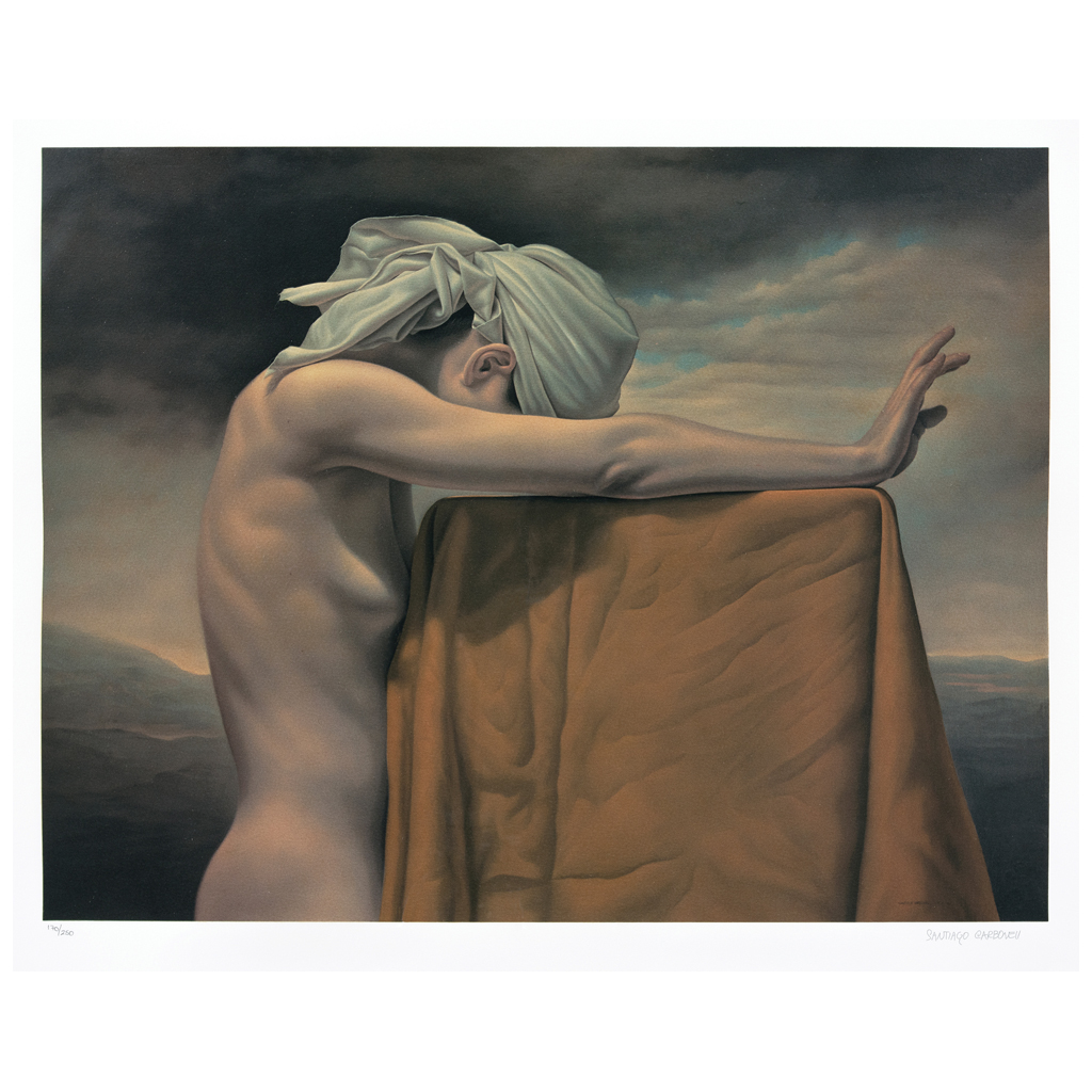 SANTIAGO CARBONELL (Ecuador, Quito, 1960 - ) Mírame y no me toques Firmada Litografía offset con barniz serigráfico 170 / 250 Publicada en: sitio oficial del artista www.santiagocarbonell.com "En cuanto a formas, texturas y procedimientos, mi pintura está basada y se fundamenta en la historia del arte culto, antes que en las imágenes mediáticas. Cotidianizar la pintura implica, para mí confirmar la pintura de siempre". Santiago Carbonell. Fuente consultada: LARA ELIZONDO, Lupina. Resumen pintores y pintura mexicana. México. Promoción de Arte Mexicano, año 9, No. 69, mayo-junio, 2004, Pág. 41. 39 x 50 cm Estimado $ 15,000-25,000