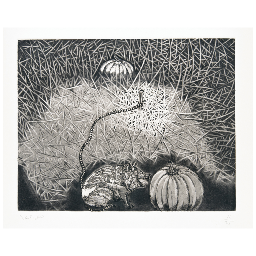 FRANCISCO TOLEDO (Juchitán, Oaxaca, 1940 - ) Cochino y calabaza Firmado Grabado 11 / 25 Publicado en: sitio oficial del artista www.franciscotoledo.net 19.5 x 25 cm Estimado $ 12,000-20,000
