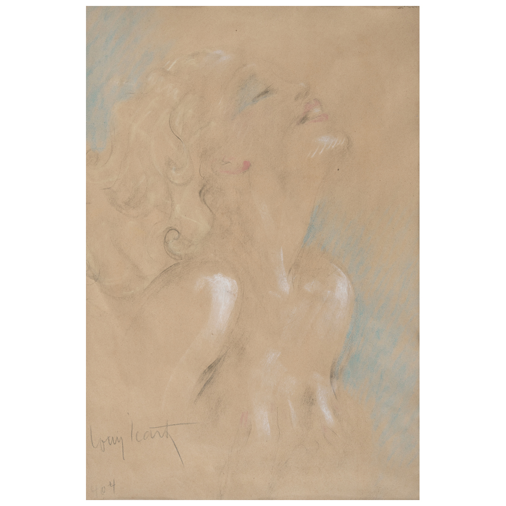 LOUIS ICART (Toulouse, Francia, 1880 - París, Francia, 1950) Sin título Firmada Mixta sobre papel Comenzó a dibujar a una edad temprana. A finales de la década de 1920 Icart trabajaba tanto para publicaciones como para estudios de diseño y moda, casi inmediatamente se volvió muy exitoso; se convertió en un símbolo de su época. Creó su propio estilo, derivado principalmente del estudio de los maestros franceses del siglo XVIII como Jean-Antoine Watteau, François Boucher y Jean-Honoré Fragonard, aunque sus dibujos también remiten a los impresionistas Edgar Degas y Claude Monet. Icart retrataba a las mujeres desde una perspectiva sensual, a menudo erótica, pero siempre con un sutil elemento de humor. Sus expresiones faciales proyectan pasión, consternación o sorpresa; las mujeres de Louis Icart son las mujeres de Francia representadas como Eva, Leda, Venus, Scheherazade y Juana de Arco, todas irresistibles. 52 x 35 cm Estimado $ 12,000-20,000