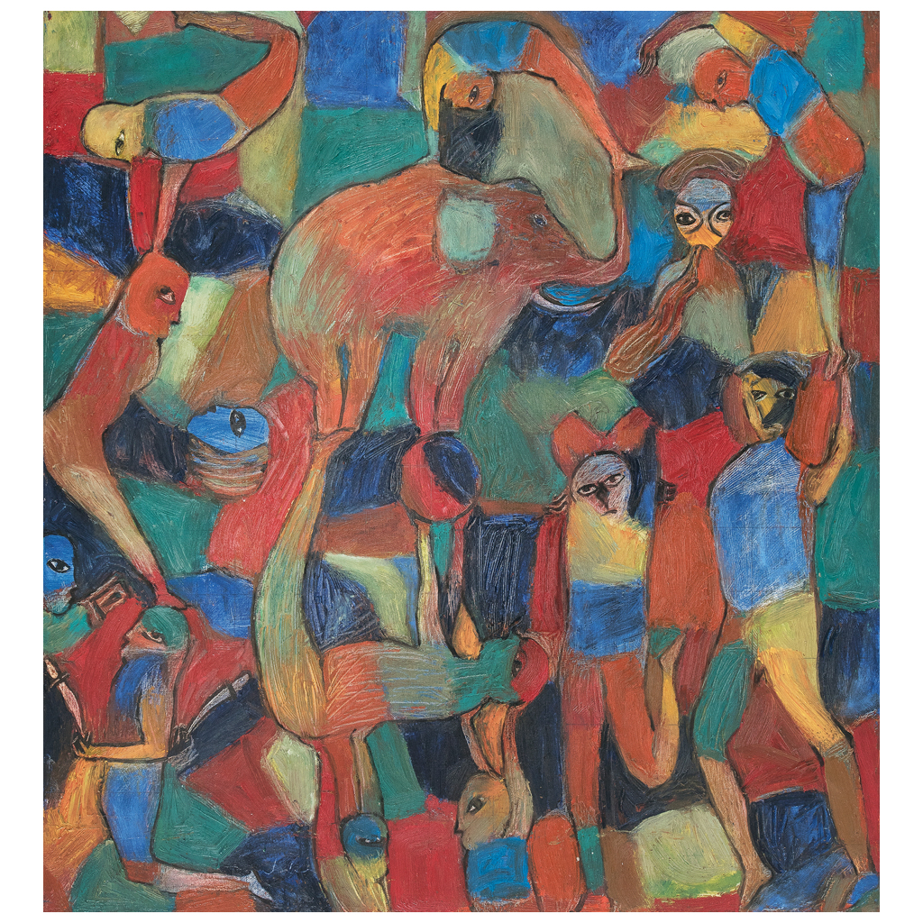 VÍCTOR CHA'CA (Juchitán, Oaxaca, 1948 - ) Sin título Firmado Óleo y arena sobre tela Presenta ligeros desprendimientos de capa pictórica. "Cha'ca se identificó, desde temprano, profundamente con las señales de la mexicanidad y eso le permite, paradójicamente, ser más libre, buscar con más avidez. Nada imita. Se mantiene fiel a sus visiones esotéricas. Inventa sus ritmos y coreografías en una especie de barroquismo delirante al servicio de su sorprendente sentido plástico". Beatriz Espejo. Fuente consultada: ESPEJO, Beatriz. Víctor Cha'ca: Los sueños son el principio de muchos cuentos. México. San Ángel Ediciones, 2013, Pág. 21. 140 x 130 cm Estimado $ 30,000-40,000