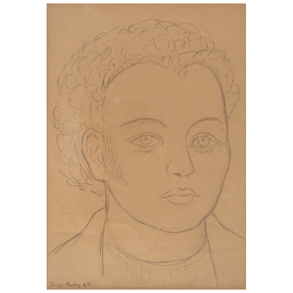 DIEGO RIVERA (Guanajuato, 1887 - Ciudad de México, 1957) Sin título Firmado y fechado 1956 Lápiz graso sobre papel Con factura de compra de Galerías la Granja. Agradecemos a Juan Coronel Rivera por la verificación de autenticidad de esta obra, noviembre de 2016. 29 x 19.5 cm Estimado $ 40,000-60,000