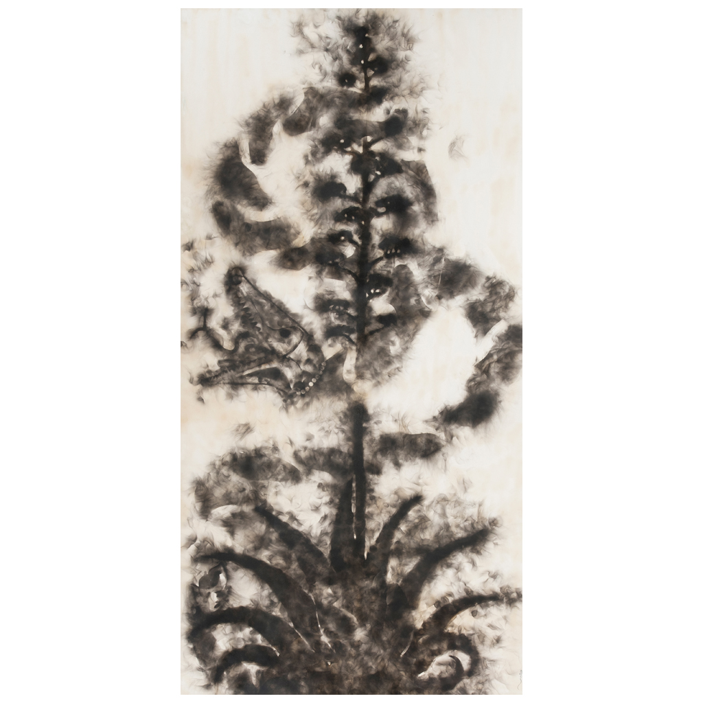 SABINO GUISU (Juchitán, Oaxaca, 1986 - ) Sin título Firmado Acrílico y humo sobre tela Con sello de Galería Jesús Villafán en el bastidor. La imagen de una llanta quemada sobre una pared o un autobús en llamas, escenas comunes en el movimiento social en Oaxaca de 2006, aunadas a que pertenece a una familia de alfareros, fueron elementos determinantes en el empleo de fuego y el humo en la obra de Sabino Guisu. Cuando era niño su padre, que era pintor, le regaló un libro sobre las guerras en la historia, y el pequeño Sabino a veces moldeaba ejércitos con barro, figuras que luego eran mandadas a la hoguera, a manera de juego. Guisu vio que en el cocimiento tradicional en Oaxaca siempre hay accidentes involuntarios sobre las vasijas: "Dije, si puedes manipular esto y transportarlo al arte contemporáneo, pues, ¿por qué no?". En Juchitán, Guisu tomó talleres de pintura y modelado en la Casa de la Cultura, recinto fundado por Francisco Toledo. Trasladado a la ciudad de Oaxaca a finales de 2005 para estudiar música y arte en la Universidad Autónoma de Benito Juárez, consiguió trabajo en el Instituto de Artes Gráficas de Oaxaca. "La biblioteca del IAGO fue en realidad mi escuela, porque era una manera de estudiar más libre. Cambió mi vida. Empecé a ver desde el arte primitivo hasta Ai Weiwei. Era como un puente que me transportaba. Siempre me ha gustado transportar lo antiguo y lo místico con lo moderno y lo frívolo". Las primeras piezas que hizo eran unos comales de barro quemados, con figuras, "Luego manipulé el fuego para que tuviera este accidente que deja. Considero que la técnica es súper primitiva. El humo le da un difuminado muy especial; eso no lo decido yo, sino el fuego al final. ¿El control? Quizá para crear un poquito la figura". Fuente consultada: MACMASTERS, Merry. "Sabino Guisu concibe arte de las cenizas". Diario La Jornada, sección Cultura, 3 de agosto de 2015. 300 x 150 cm Estimado $ 25,000-45,000