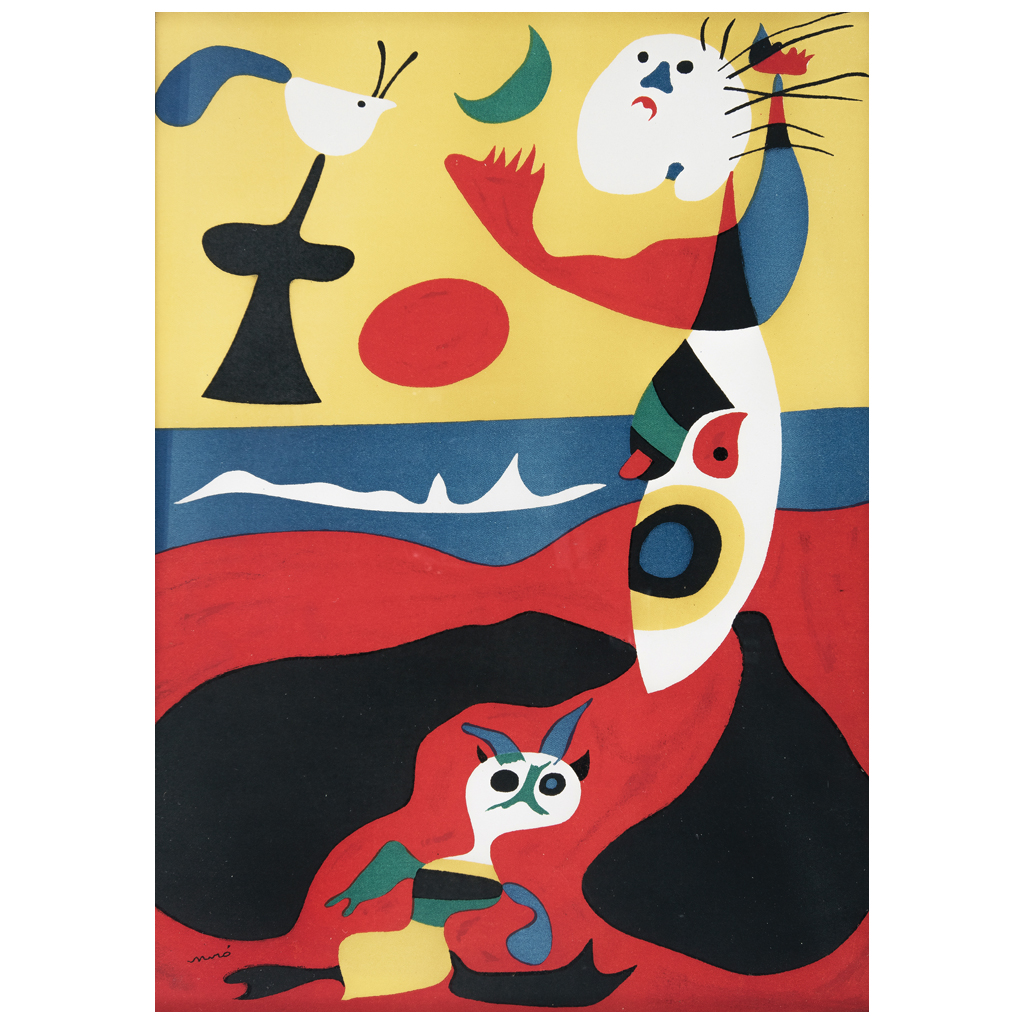 JOAN MIRÓ (Barcelona, España, 1893 - Palma de Mallorca, España, 1983) L'éte, 1938 Firmada en plancha Litografía sin número de tiraje Impresa por Mourlot y publicada por editores Tériade, en segunda edición de la revista Verve en 1938. Verve fue una de las revistas de arte parisinas más célebres del siglo XX. Abordaba temas de arte moderno y pintores emergentes de la época, pero su principal contenido fue el surrealismo. La revista fue fundada por el crítico de arte Tériade en 1937 y únicamente se realizaron 38 publicaciones en convenio con Mourlot Freres Fuente consultada: sitio de Tériade Proyect http://teriade8.wix.com/verve 35 x 25 cm Estimado $ 8,000-12,000