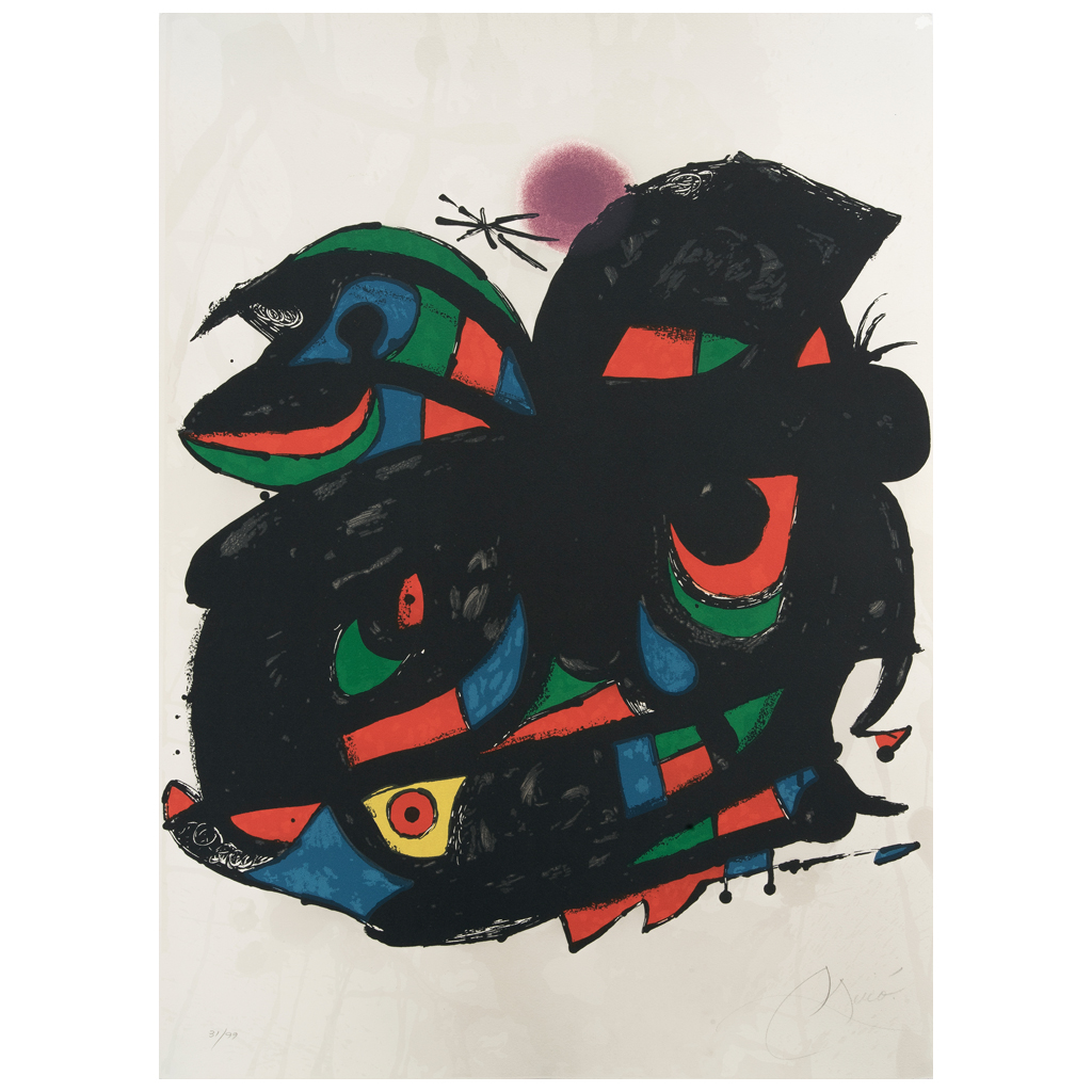 JOAN MIRÓ (Barcelona, España, 1893 - Palma de Mallorca, España, 1983) Cartel para la inauguración de la Fundació Joan Miró, Barcelona, 1976 Firmada a lápiz Litografía 31 / 99 Impresa y publicada por la Fundación Joan Miró, Barcelona y Ediciones Polígrafa. Publicada en: CRAMER, Patrick. Miró Lithographe. Vol. VI. 1976-1981. París. Maeght Éditeur, 1992, catalogada 1090. La Fundación Joan Miró fue creada por Joan Miró en 1975 con el fin de almacenar su colección privada y establecer un espacio para impulsar la investigación y los estudios del arte contemporáneo. Para las primeras inauguraciones, Miró seleccionó algunas obras de su autoría para que fuesen los diseños de los carteles publicitarios. La edición de esta litografía fue de 99 ejemplares firmados y numerados a lápiz por el artista, también existe un póster del cual se imprimieron 2000 copias con el texto que informaba de la inauguración de la fundación. Fuente consultada: sitio de la Fundació Joan Miró www.fmirobcn.org 70 x 50.5 cm Estimado $ 35,000-50,000
