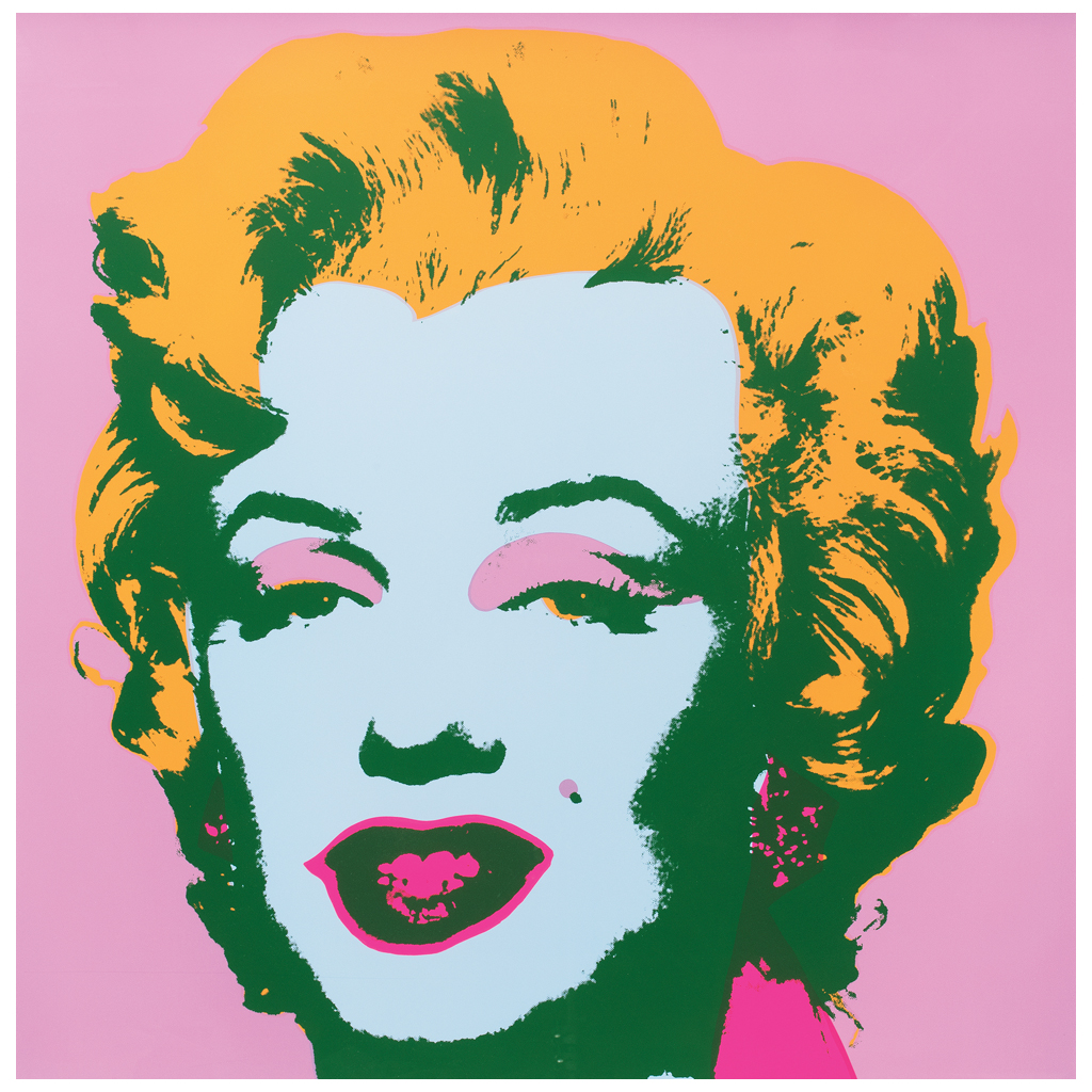 ANDY WARHOL (Pensilvania, E.E. U.U., 1928 - Nueva York, E.E. U.U., 1987) 11.28: Marilyn Monroe Con sello en la parte posterior "Fill in your own signature" Serigrafía Publicada por Sunday B. Morning. "Para mí, Marilyn Monroe no es más que una persona entre muchas. Y, por lo que respecta a la pregunta de si se trata de un acto simbólico pintarla con tales colores chillones, lo único que puedo decir: sólo me importaba la belleza y ella es bella; y si hay algo que sea bello, eso son los colores bonitos. Eso es todo. Así o de una forma parecida ocurrió la historia". Andy Warhol. 91 x 91 cm Estimado $ 8,000-12,000