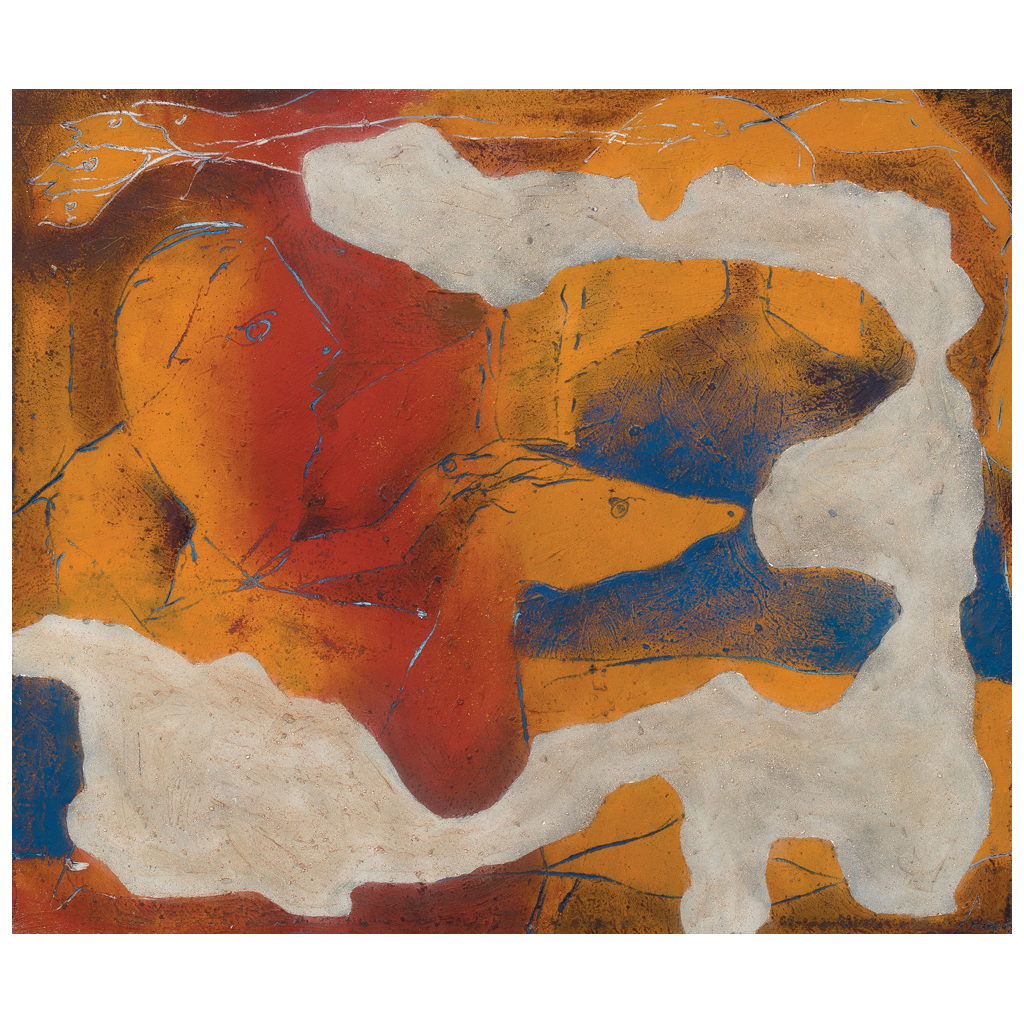 JAVIER CRUZ (Ciudad de México, 1952 - ) Cabalgando Firmado y fechado 1992 Óleo y arena sobre tela Con certificado de autenticidad de Galería Arte Núcleo firmado por el artista. Javier Cruz es pintor, escultor y grabador. Estudió dos licenciaturas en la Universidad Nacional Autónoma, la de Artes Plásticas y la de Ciencias Políticas y Administración Pública. En la ENAP también obtuvo la Maestría en grabado en 1985. Al año siguiente llevó cursos de gráfica en la Facultad de Bellas Artes de Barcelona. De 1972 a la fecha ha tenido numerosas exposiciones individuales en la Ciudad de México, Guadalajara, Chihuahua, Toluca, París y Barcelona, la más importante fue seguramente "Señales cruzadas", presentada en 1988 en el Museo de Arte Moderno. Fuente consultada: TIBOL, Raquel. "La dimensión política de Javier Cruz". México. Semanario Proceso, 5 de mayo de 1990. 120 x 140 cm Estimado $ 60,000-80,000