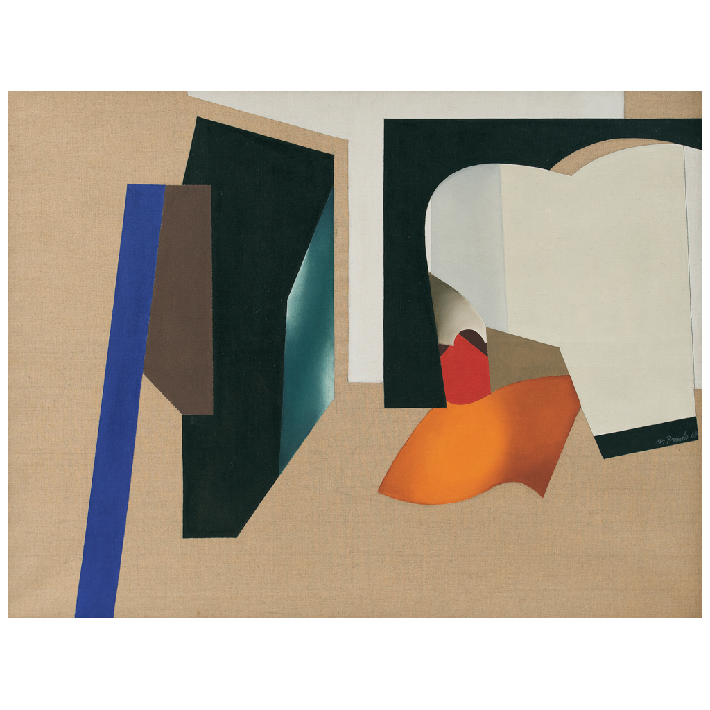 NADINE PRADO (Marsella, Francia, 1940 - ) Sin título Firmado y fechado 69 Óleo y acrílico sobre lino Su madre era francesa y su padre un diplomático mexicano. Su formación fue en la École des Beaux-Arts en París. Presentó su primera muestra individual en el Salón de la Plástica Mexicana en 1963 y en 1965 comenzó a exhibir en Nueva York. Su obra se ha presentado en importantes recintos como el Museo de Arte Moderno en la Ciudad de México y en otros museos de Estados Unidos, Francia y Latinoamérica. En 1964 fue comisionada para pintar el mural "Luz del Norte" en la sala "Culturas del Norte" del Museo Nacional de Antropología. Es considerada una de las protagonistas del movimiento de La Ruptura. 88.5 x 116 cm Estimado $ 65,000-100,000