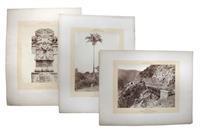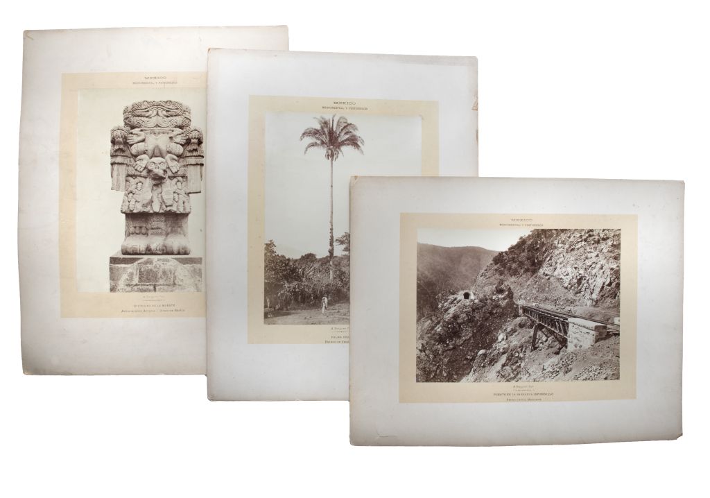 Fotografías en albúmina, 25.7 x 19. 7 cm., 26.5 x 19.6 cm. y 19.5 x 26.5 cm., montadas sobre cartón, 43 x 34 cm. Cartones con roturas, dos con faltante en la esquina inferior derecha. Piezas: 3.