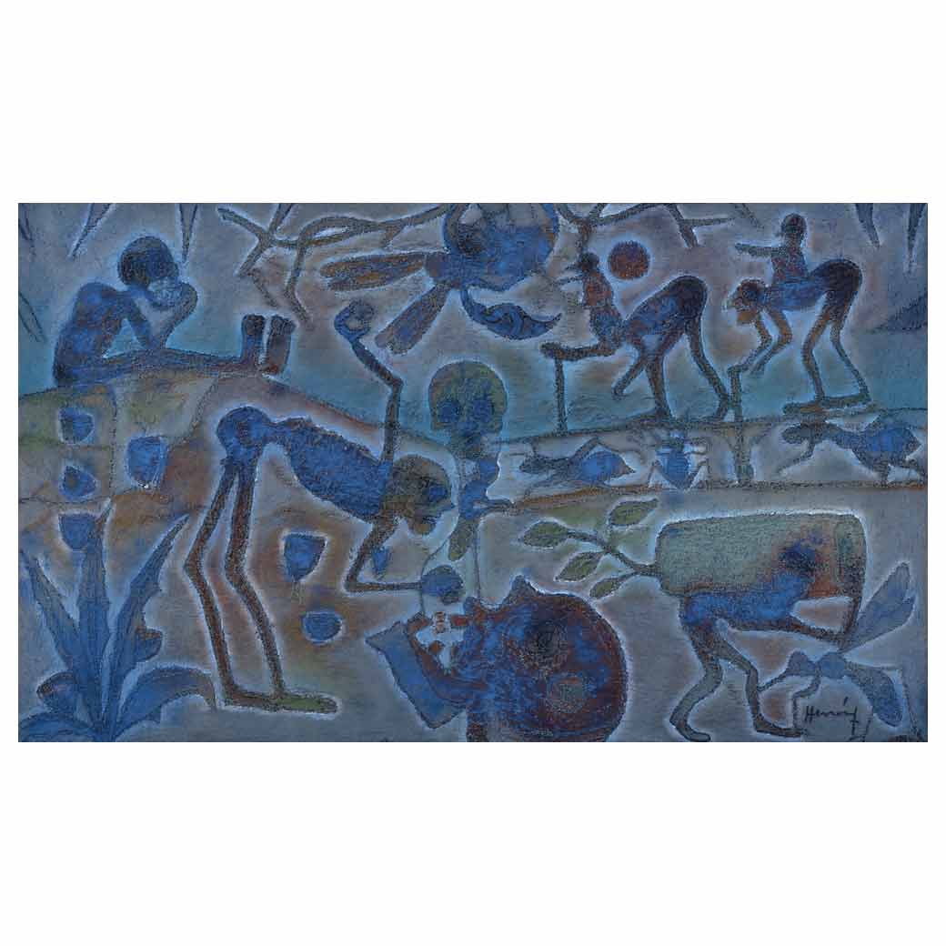 SERGIO HERNÁNDEZ (Huajuapan de León, Oaxaca, 1957 - ) Popol Vuh, 2013 Firmado Óleo y arena sobre tela Con certificado de autenticidad del artista, enero de 2012. Agradecemos a la Oficina Sergio Hernández por la verificación de autenticidad de esta obra, julio de 2022. Al observar de manera general su producción se puede definir una iconografía auténtica: la elaboración de lienzos en colores monocromáticos, vibrantes primarios, grandes formatos, el uso de la escritura como parte del lenguaje visual y el arte geométrico, uso de materiales como sílica, barro, cerámica, plata, encáustica o cera, azúcar y densas capas o trozos de pigmento. Fuente consultada: SULLIVAN, Edward. Sergio Hernández. México. Fomento Cultural Banamex, 2008, pp. 25-29. 60 x 100 cm Estimado $500,000-700,000