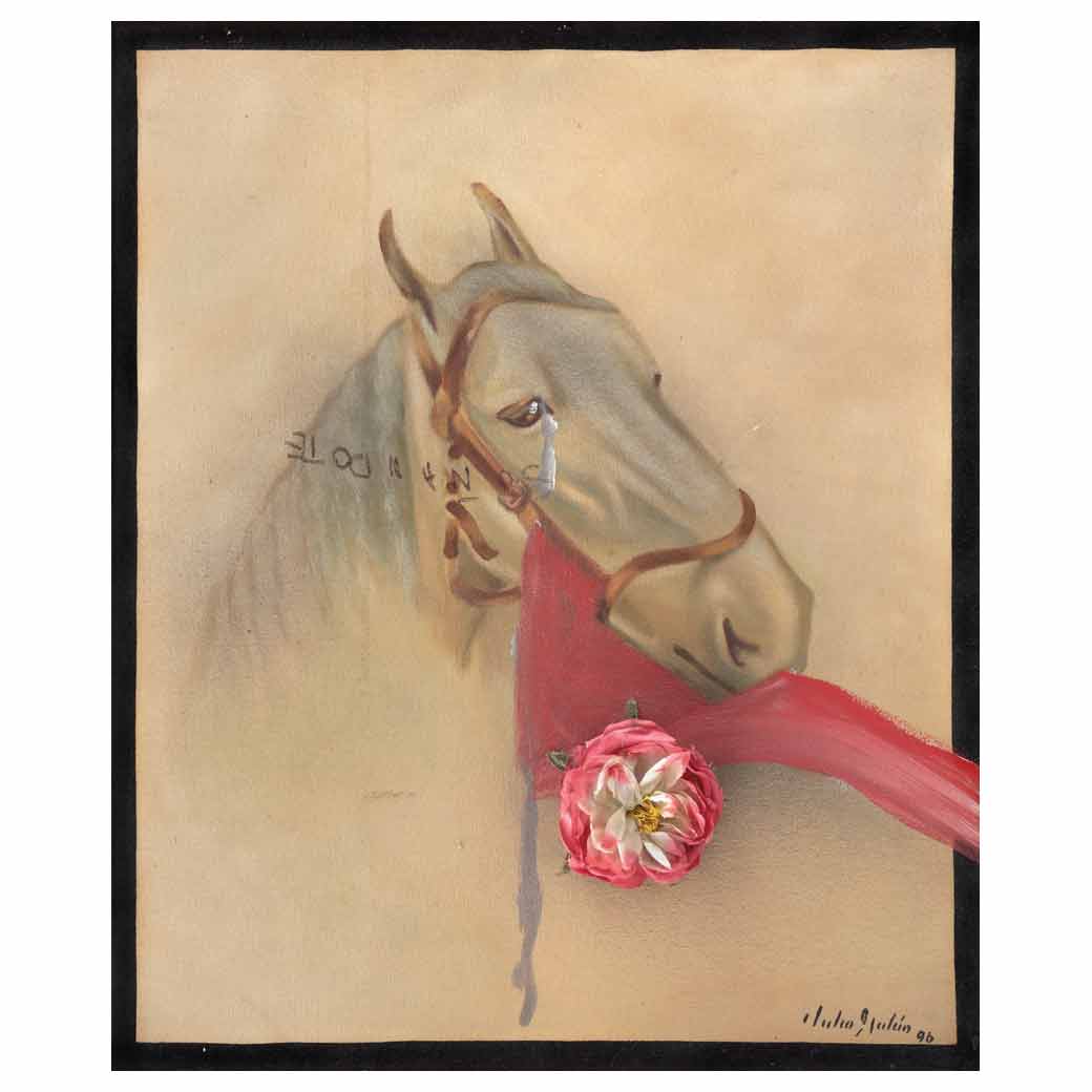 JULIO GALÁN (Múzquiz, Coahuila, 1959 - Zacatecas, 2006) Soñándote Firmado y fechado 96 Óleo y mixta sobre tela Procedencia: adquirido directamente al artista. Presenta detalles de conservación. Julio Galán residió en Monterrey desde los diez años de edad hasta que en 1984 partió a Nueva York después de haber estudiado la carrera de Arquitectura. Tras un año de estancia en la gran manzana, viajó a Francia, Holanda e Italia para complementar y confirmar su interés por dedicarse a la pintura. Regresó a México en 1990, ya con experiencia en el medio y con un amplio reconocimiento internacional fue fácil para él colocar su obra en exposiciones e importantes colecciones, aunque muchas de ellas fueron trabajos controversiales que destacaron por su fuerte carga simbólica e imágenes arriesgadas. Actualmente, la crítica y la historia lo consideran uno de los más destacados representantes de la plástica mexicana contemporánea. Su obra se encuentra en el Stedelijk Museum en Ámsterdam, en el Museum Boijmans Van Beuningen en Róterdam y en el Museo de Arte Contemporáneo en Monterrey, México. "Pintura engañosa y subversiva que causa adicción, que repite sus temas y los transforma hasta volverlos irreconocibles, las obras de Galán mezcla, con gracia y sabiduría, los mitos y las referencias nacionales, el teatro y la sinceridad, el transformismo y la trasparencia". Carlos Monsiváis, fragmento del texto de la exposición "Oro poderoso". Fuentes consultadas: PITOL, Sergio et al. Julio Galán. México. Museo de Arte Contemporáneo de Monterrey, 1993 y sitio oficial del Museo Amparo www.museoamparo.com 60 x 50 cm Estimado $380,000-500,000