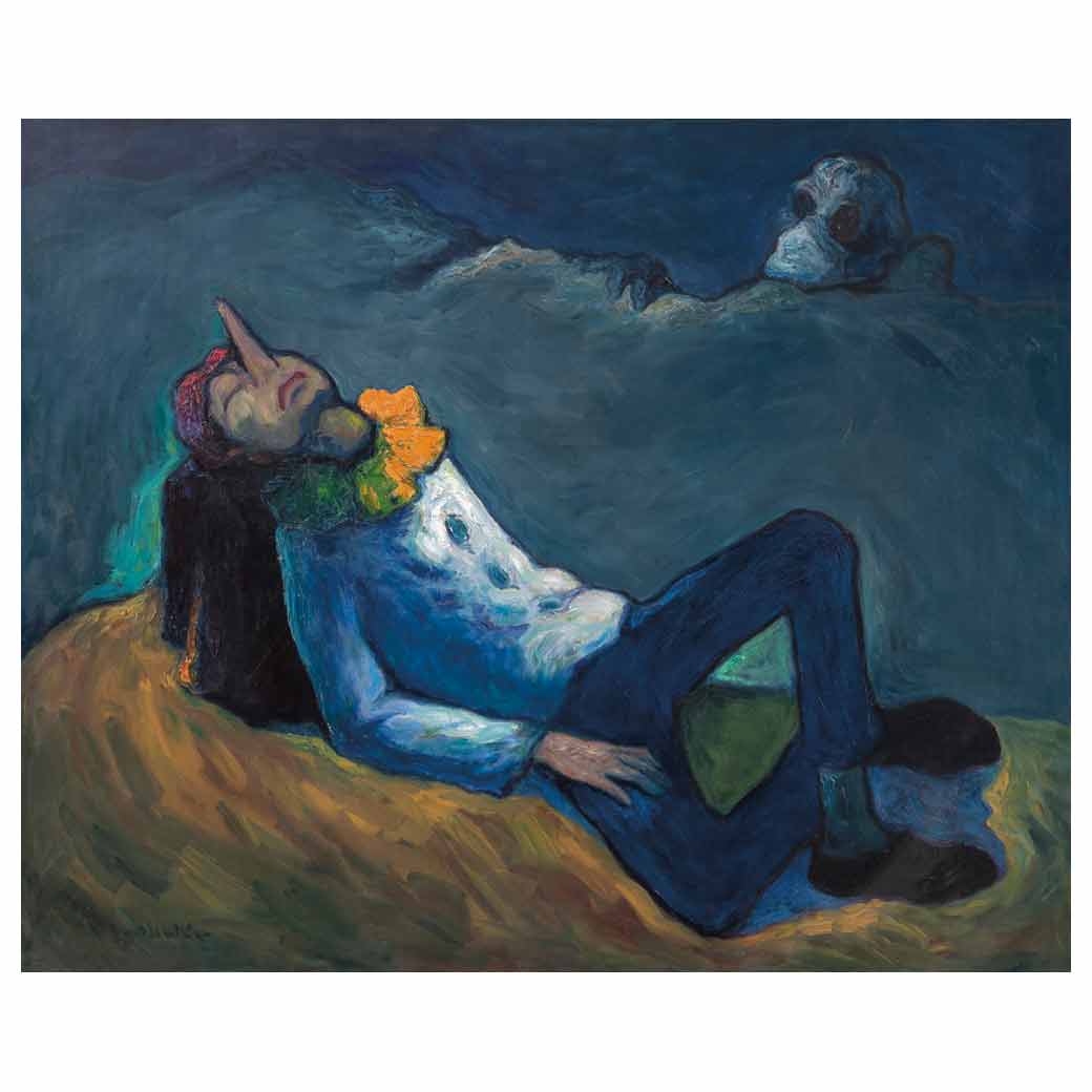 ALFREDO ALCALDE GARCÍA (Chimbote, Perú, 1961 - ) Pinocho sueña Firmado al frente. Firmado y fechado Marzo 2020 al reverso Óleo sobre tela Con certificado de autenticidad del artista, marzo de 2023. Agradecemos al Maestro Alfredo Alcalde por la revisión de autenticidad de esta obra, septiembre de 2023. Presenta detalles de conservación. Inició sus estudios en arte en la Escuela de Bellas Artes de Lima, donde tuvo de maestro a Víctor Humareda, considerado uno de los pintores expresionistas más importantes en Perú. Su estilo ha transitado por el impresionismo y el expresionismo hasta experimentar con el realismo simbólico a través de temas irónicos relacionados con la reflexión y denuncia social. A lo largo de su carrera, además de desempeñarse como pintor, ha realizado obra escultórica, además de experimentar con el grabado y la cerámica. Ha ilustrado libros, participado en foros y pláticas en universidades y centros culturales en Perú y el extranjero. Ha expuesto en museos y galerías de su país natal así como en el extranjero, en países como Chile, México, Tokio, Suiza y Francia; asimismo, en el año 2000 fue distinguido con la placa "Sol del Cuzco" otorgada por el Museo de la Nación y el Instituto Nacional de Cultura del Perú a la mejor exposición de arte del año. Fuentes consultadas: VILLACORTA CHÁVEZ, Jorge. "Alfredo Alcalde. Antología pictórica 1985-2016. Caminos, máscaras y destinos". Perú. Instituto Cultural Peruano Norteamericano, Galería Germán Krüger Espantoso, hoja de sala de la muestra presentada de julio a agosto de 2016. 81 x 100 cm Estimado $200,000-270,000