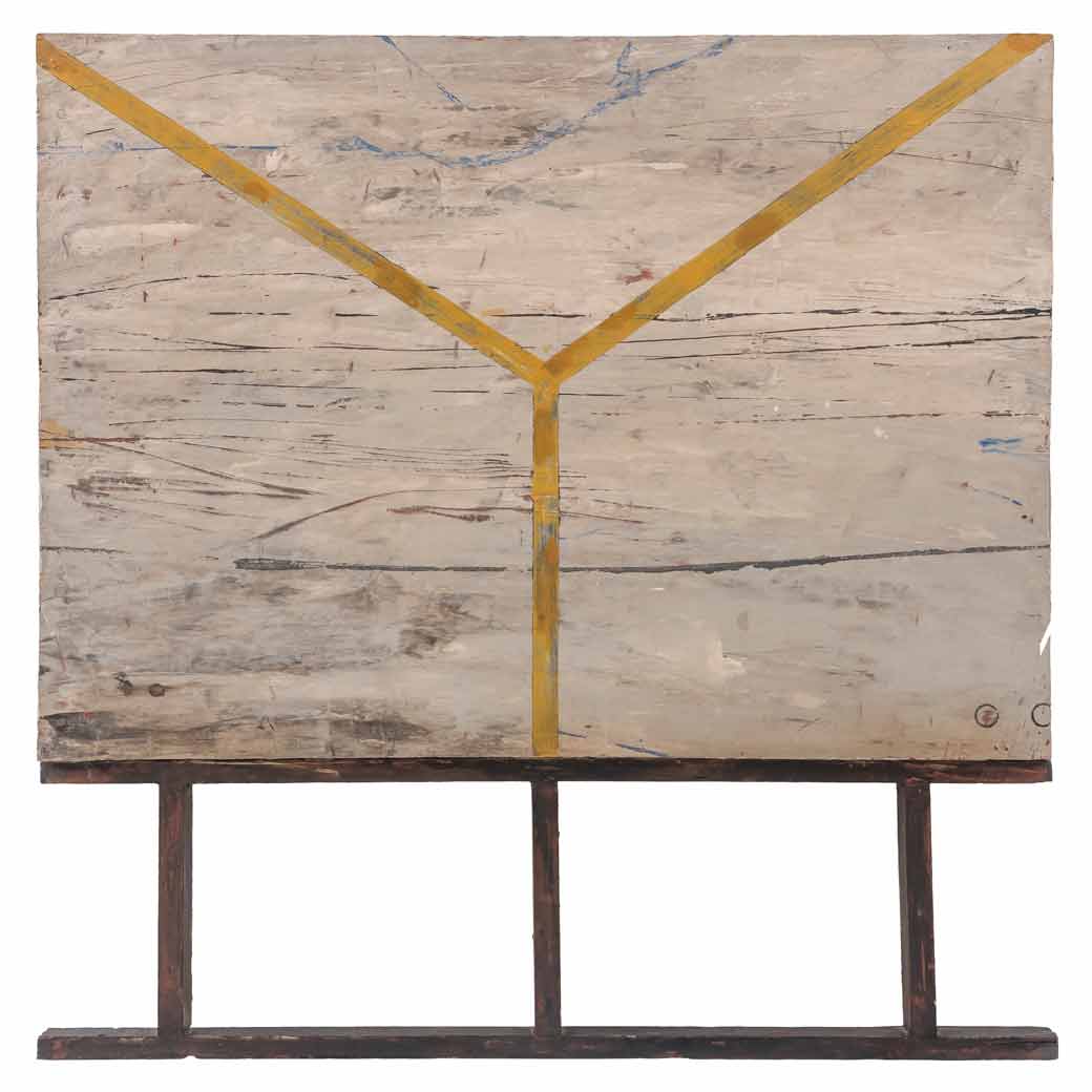 FRANCISCO CASTRO LEÑERO (Ciudad de México, 1954 - Ciudad de México, 2022) Estructuras aparentes III Firmado y fechado 89 en estructura. Firmado dos veces y fechado 1989 al reverso Acrílico sobre madera Con dedicatoria al reverso. Presenta detalles de conservación y desprendimiento de capa pictórica. El tercero de los hermanos Castro Leñero formó parte de las filas del alumnado de La Esmeralda, más tarde tuvo la oportunidad de estudiar Diseño Gráfico en Urbino, Italia gracias al apoyo de una beca. Otra de sus facetas en el entorno artístico fue la de docente, impartió clases en la Escuela Nacional de Artes Plásticas de la UNAM, así como en instituciones de Estados Unidos y Camboya. En relación con su labor formativa, fundó el taller experimental "La Colmena" en compañía de Luis Argudín, José Miguel González Casanova y Eloy Tarcisio, cuyo objetivo grupal era recibir y apoyar a sus alumnos más sobresalientes. Fue un artista que se enfocó en la producción de pintura y obra gráfica, además de haber producido algunas piezas en escultura y nuevos medios como la instalación. En sus piezas podemos observar una inclinación por las formas geométricas y la abstracción, el cuadrado resulta protagonista en gran parte de su producción. Por su parte, en su paleta manejaba tonalidades tierra con colores primarios como acentos para completar las composiciones. Fuentes consultadas: sitio oficial del Instituto Nacional de Bellas Artes y Literatura www.inba.gob.mx 86 x 86 cm Estimado $65,000-90,000