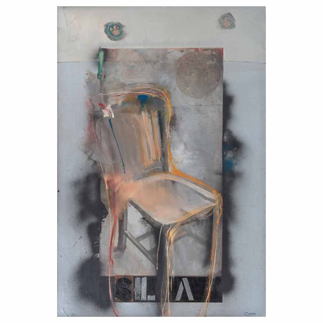 ALBERTO CASTRO LEÑERO (Ciudad de México, 1951 - ) Silla Firmado Óleo y collage sobre tela Agradecemos al Maestro Alberto Castro Leñero por la verificación de autenticidad de esta obra, septiembre de 2023. Exhibido en: "Vuelta prohibida", muestra presentada en el Museo de Arte Moderno de la Ciudad de México, de abril a mayo de 1982. Presenta detalles de conservación y craqueladuras. "El trabajo de Alberto es múltiple, es variado, es diverso, toma de muchos lados, pero tiene una extraña unidad. Es de una enorme integridad, unidad quizá no sería la palabra más conveniente, pero sí 'integridad', aquella que tiene para dar a entender las cosas, cierta alusión a la organicidad del trabajo, es una obra viva […] Estamos en el entendido de que Alberto ha pensado en grande y ha trabajado en grande, por eso es un gran artista y, en ese sentido, es igual, es comparable a cualquier gran artista del mundo en la época moderna". David Huerta. Fuente consultada: HUERTA, David et al. Ciclo. Alberto Castro Leñero. México. FONCA, 2013, pág. 20. 180 x 120 cm Estimado $180,000-250,000