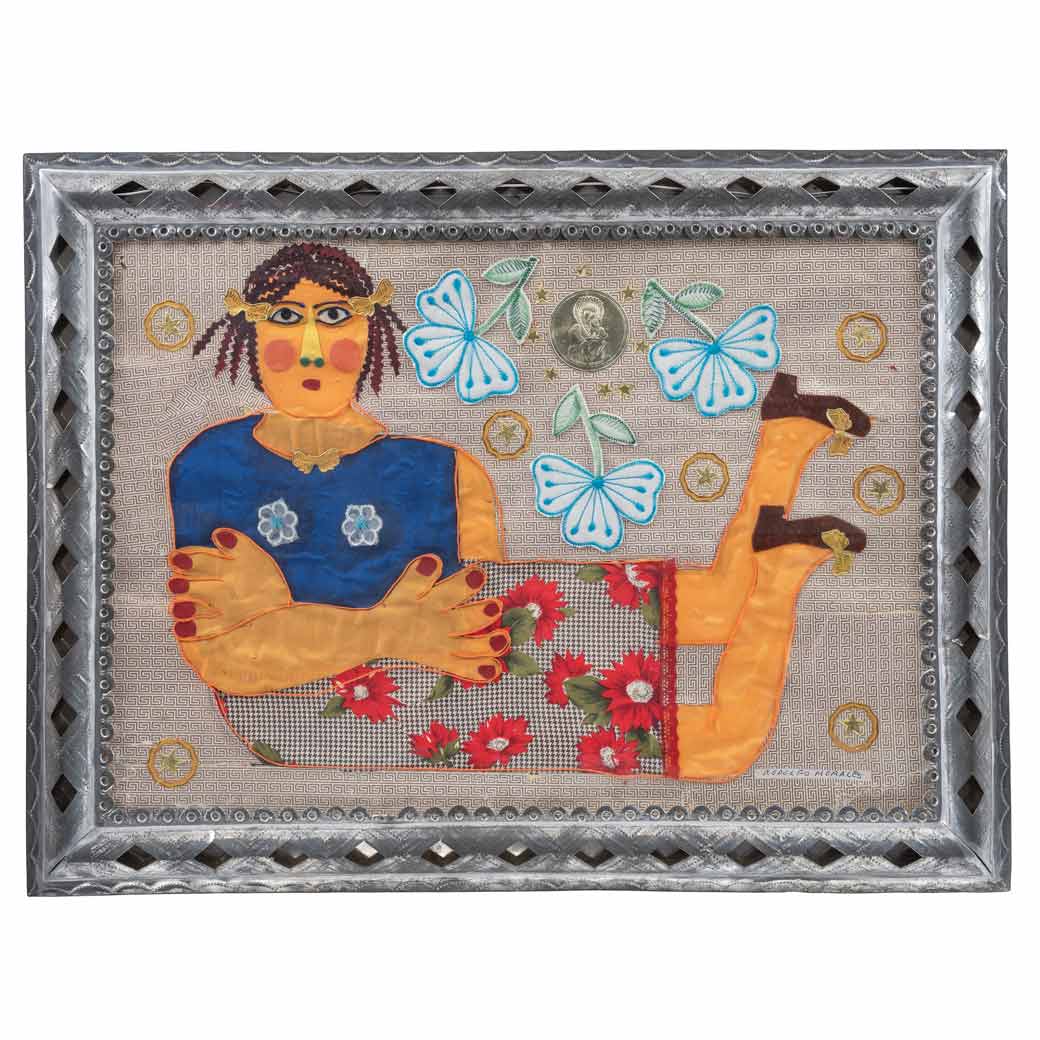 RODOLFO MORALES (Ocotlán de Morelos, Oaxaca, 1925 - Oaxaca de Juárez, 2001) La niña de los moños Firmado en una tira de papel Collage de textiles, papeles, imágenes y aplicaciones de listones sobre papel con marco de hojalata repujado Con certificado de autenticidad de Galería Oscar Román, septiembre de 2023. Presenta detalles de conservación. La carrera de Rodolfo Morales alcanzó gran reconocimiento, en 1985, regresó a Ocotlán para dedicarse exclusivamente a la pintura, ahí mismo continuó con algunos trabajos de collage ya que poseía un estudio donde guardaba objetos que había recolectado en viajes y los destinaba para la ejecución de sus obras. A lo largo de su producción, podemos observar que este artista se aleja de los códigos simbólicos habituales del nacionalismo mexicano, sin embargo, sus piezas no dejan de transmitir sus orígenes en ningún momento. "Un pintor es aquel que puede hacer trazos precisos, pero un artista, ¡ah, eso es algo muy diferente! Un artista es aquel que además de pintar puede expresarse con perfección". Rodolfo Morales. Fuente consultada: PÁRAMO, Omar y PAZ, Rafael. "Las artes y las ciencias, de Rodolfo Morales". México. Gaceta UNAM, Sección Academia, 05 de septiembre de 2022. 44.5 x 59 cm Estimado $60,000-80,000
