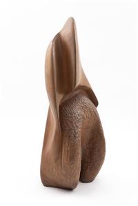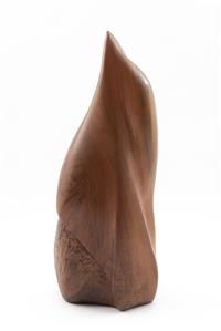 NAOMI SIEGMANN (Nueva York, EE. UU., 1933 - Ciudad de México, 2018) Sin título Firmada y fechada 1976 Escultura en talla de madera Procedencia: adquirida directamente a la artista. Presenta ligeros detalles de conservación. "Perteneciente al sobresaliente gremio de mujeres que han reinventado la escultura contemporánea en México, Naomi Siegmann destacó desde la pasada década de los años setenta por el dominio de un lenguaje mimético que reproducía en madera, mármol o metal circunstancias de la vida doméstica, registradas a través del protagonismo de los objetos. Catalogada como surrealista, pop e hiperrealista, la escultora nacida en Nueva York en 1933 y radicada en México desde los años sesenta lograba, con una gran seducción visual, alterar el significado de episodios domésticos que parecían estar centrados en los objetos, cuando en realidad registraban una vivencia cotidiana". Blanca González Rosas. Fuente consultada: GONZÁLEZ ROSAS, Blanca. Mujeres escultoras: Naomi Siegmann. México. Revista Proceso, marzo de 2018. 70 x 24 x 27 cm Estimado $75,000-100,000