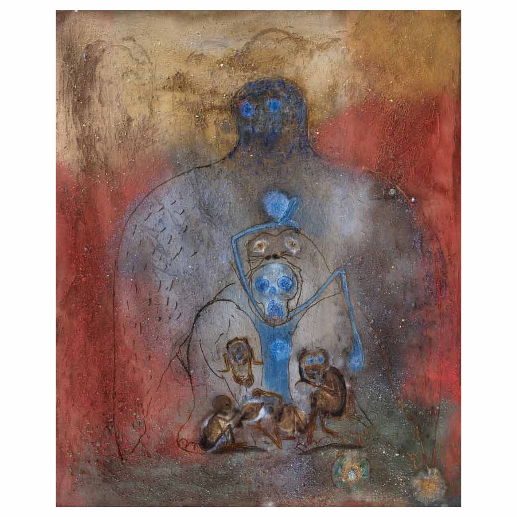 SERGIO HERNÁNDEZ (Huajuapan de León, Oaxaca, 1957 - ) El hambre Firmado y fechado 1995 al reverso Óleo y arena sobre tela Con documento de Teresa del Conde, diciembre de 1996. Agradecemos a la Oficina Sergio Hernández por la verificación de autenticidad de esta obra, septiembre de 2023. A los 16 años Sergio Hernández decidió independizarse y se mudó a la Ciudad de México para ingresar a la Academia de San Carlos y posteriormente a La Esmeralda. Después pasó un año en París conociendo las vanguardias europeas y a su regreso a México, tomó un papel destacado dentro de la plástica y la cultura de Oaxaca. Con el tiempo se convirtió en un multifacético pintor y escultor que ha producido un conjunto de obras con diversas técnicas y materiales como óleos, tintas, gouaches, acuarelas y grabados, entre otros. Actualmente, su trabajo forma parte de importantes acervos de instituciones y museos públicos y privados, como el del Museo de Arte Moderno de la Ciudad de México, el Instituto de Artes Gráficas de Oaxaca, el Museo de Arte Contemporáneo de Aguascalientes, el San Antonio Museum of Art en Texas y el Museum Würth Künzelsau en Alemania. Fuente consultada: DEL CONDE, Teresa. Sergio Hernández. México. Turner, Fomento Cultural Banamex, 2008, pp. 26 y 323. 100 x 80.5 cm Estimado $370,000-400,000
