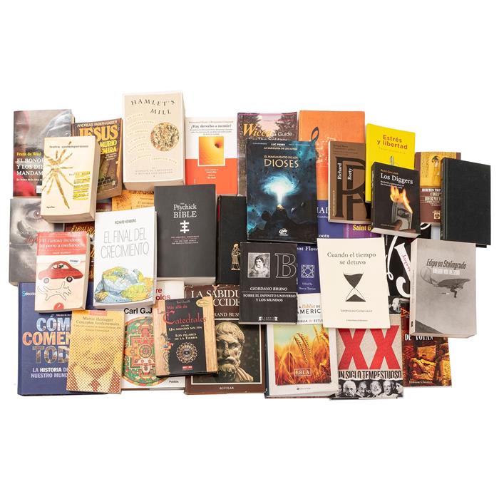 Algunos autores y títulos: Álvaro Lozano "XX un Siglo Tempestuoso"; "The Psychic Bible. The Apocryphal Scriptures o Genesis Breyer P-Orridge and he Third Mind o the Temple o Psychick Youth"; Frans de Wall "El Bonobo y los Diez Mandamientos"; Archai "Historical Roots and Current Flowerings"; René Chandelle "Más Allá de las Catedrales"; Pierre Klossowski "Sade mi Prójimo"; Scott Cunningham "Wicca a Guide for the Solitary Practitioner"; "La Biblia de las Américas. Biblia de Estudio"; Mark Haddon "El Curioso Incidente del Perro a Medianoche"; Carl J. Jung "El Hombre y sus Símbolos"; Gregor von Rezzori "Edipo en Stalingrado"; Giorgio de Santillana & Hertha von Dechend "Hamlet's Mill. An essay investigating the origins of human knowledge and its transmission trough myth"; Werner Keller "Y la Biblia Tenía Razón".