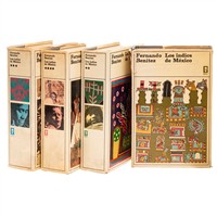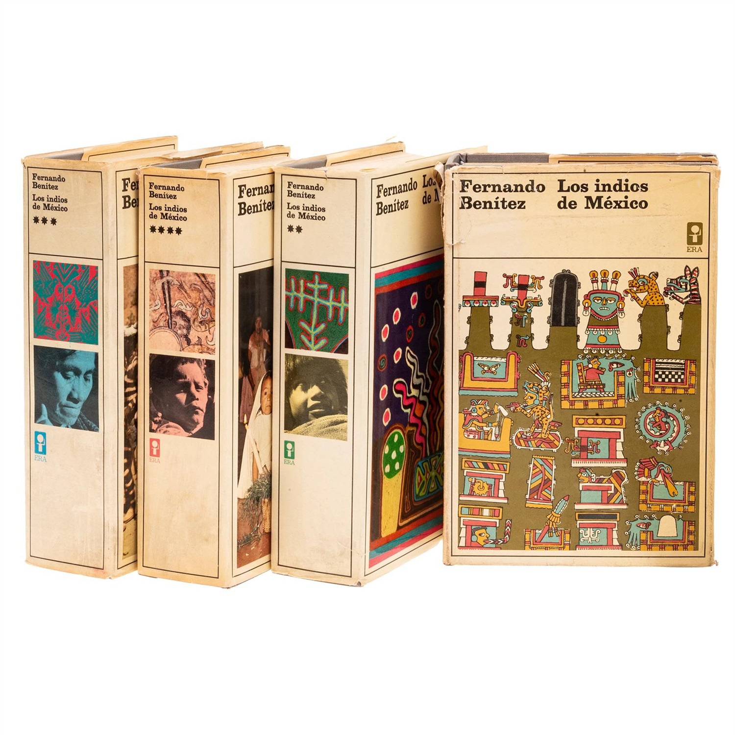 BENÍTEZ, FERNANDO. LOS INDIOS DE MÉXICO. MÉXICO: EDICIONES ERA, 1967, 1968, 1970, 1972. 8o. marquilla, 513; 605; 655; 595; 449 p. Primera edición. Biblioteca ERA - Serie Mayor. Tomo I: Las Tarahumaras / Los Tzotziles / Los Tzeltales / Los Mixtecos. Tomo II: Los Huicholes. Tomo III: Los Coras / Los Mazatecos. Tomo IV: Los Otomíes / Los Mayas. Profusamente ilustrados. Encuadernados en pasta dura. Piezas: 4. Estimado $1,300-3,000