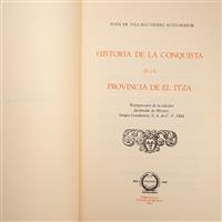COLECCIÓN. CENTRO DE ESTUDIOS DE HISTORIA DE MÉXICO CONDUMEX CHIMALISTAC. MÉXICO: 1980 – 1986. EJEMPLARES FUERA DE COMERCIO. a) Villagutierre Sotomayor, Juan de. Historia de la Conquista de la Provincia de el Itza. fo. marquilla. Reimpresión de la Edición facsimilar de México Grupo Condumex, 1984. Encuadernado en rústica. b) Granados y Gálvez, Joseph Joaquín. Tardes Americanas. 8o. marquilla, Reimpresión de la Edición facsimilar de México Grupo Condumex, 1983. Encuadernado en rústica. c) Zavala, Silvio. Fray Alonso de la Veracruz. Primer Maestro de Derecho Agrario en la Incipiente Universidad de México 1553 – 1555. 8o. marquilla. Encuadernado en rústica. d) Castorena Ursúa y Goyeneche, Juan Ignacio María de. Gacetas de México. 8o. marquilla. Reimpresión de la Edición facsimilar de México Grupo Condumex, 1985. Tomos I – III. Encuadernados en rústica. Piezas: 3. e) Aguilar Camín, Héctor. Álvaro Obregón Hombre, Vida y Obra. 8o. marquilla. Serie Conferencias 1. Encuadernado en rústica. f) Solano, Francisco de. La Ciudad de México en el Año de 1777. Según el testimonio inédito de Antonio de Ulloa. 8o. marquilla. Serie Conferencias 2. Encuadernado en rústica. Total de piezas: 8. Estimado $2,500-5,000