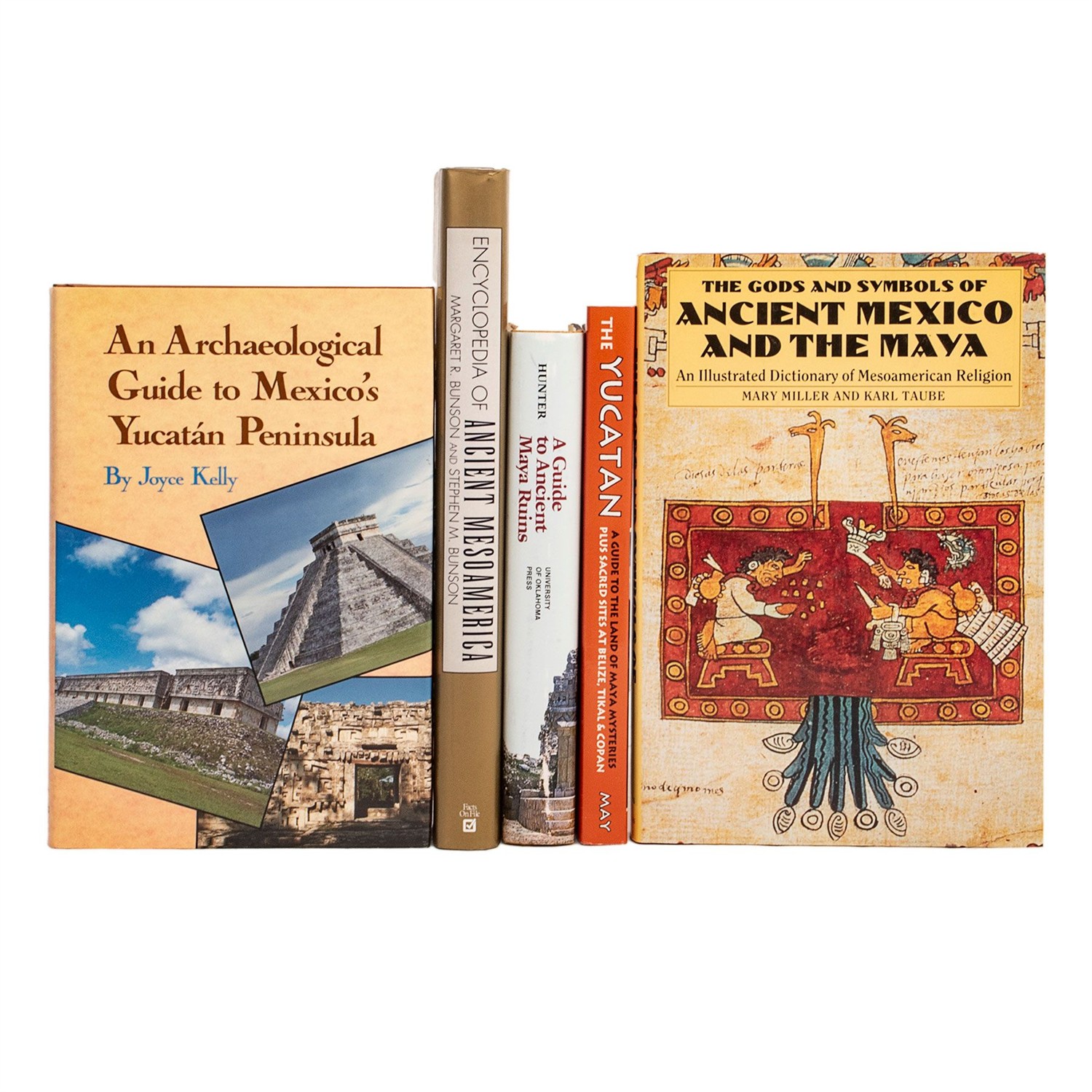 DICCIONARIO, ENCICLOPEDIA Y TRES GUÍAS ARQUEOLÓGICAS. a) Bunson, Margaret R. and Bunsen, Stephen M. Encyclopedia of Ancient Mesoamerica. New York: Facts On File, 1996. 4o. marquilla, 322 p. Encuadernado en pasta dura. b) Miller, Mary and Taube, Karl. The Goods and Symbols of Ancient Mexico and the Maya. London: Thames and Hudson, 1993. 4o. marquilla, 214 p. An Illustrated Dictionary of Mesoamerica Religion. Encuadernado en pasta dura. c) Hunter, Bruce C. A Guide to Ancient Maya Ruins. Norman and London: University of Oklahoma Press, 1986. 8o. marquilla, 342 p. Encuadernado en pasta dura. d) May, Antoinette. The Yucatan a Guide the Land of Maya Mysteries Plus Sacred at Belize, Tikal & Copan. San Carlos, CA.: Wide World Publishing/Tetra, 1993. 8o. marquilla, 325 p. Encuadernado en rústica. e) Kelly, Joyce. An Archaeological Guide to Mexico's Yucatan Peninsula. Norman and London: University of Oklahoma Press, 1993. 4o. marquilla, 364 p. Encuadernado en pasta dura. Total de piezas: 5. Estimado $1,000-2,000