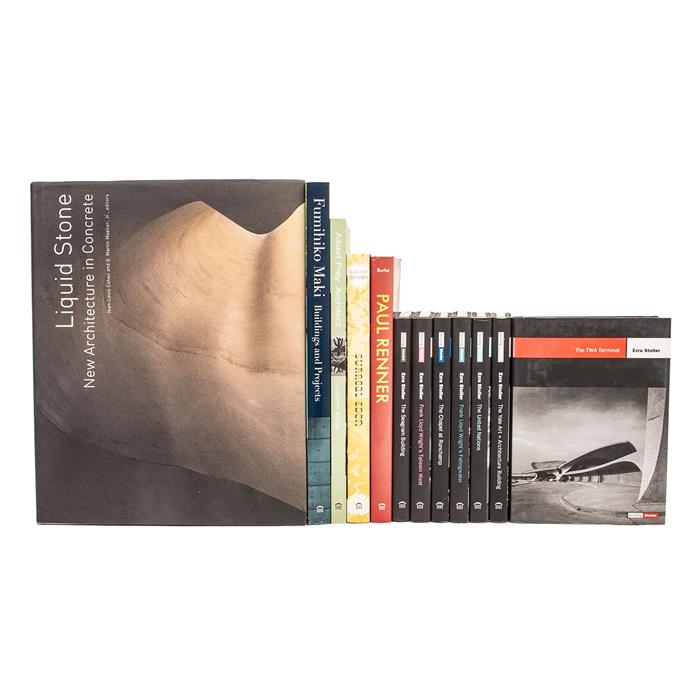 COLECCIÓN DE LA EDITORIAL PRINCETON ARCHITECTURAL PRESS. Títulos: Surreal Eden; Paul Renner the Art of Typography; The Seagram Building; Frank Lloyd Wright's Fallingwater; Frank Lloyd Wright's Taliesin West; The Chapel at Ronchamp; The Yale Art + Architecture Building; The TWA Terminal; The United Nations; Liquid Stone New Architecture in Concrete; Fimihiko Maki Buildings and Projects; Albert Frey, Architect. Varios formatos. Encuadernados en rústica y en pasta dura. Piezas: 12. Estimado $1,500-2,000
