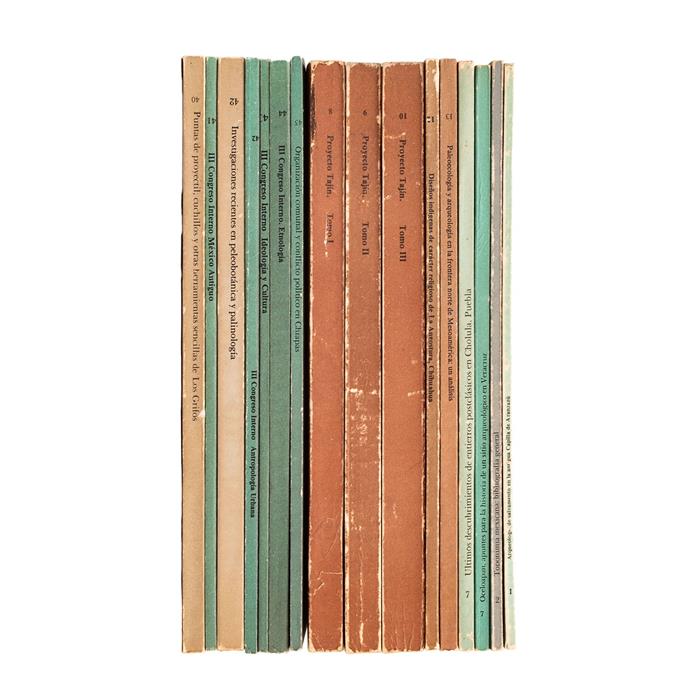 4o. marquilla. Primera edición. Números: 1, 2 ,7, 8, 9, 10, 12, 13, 40, 41, 42, 43, 44 y 45. La Edición consta de 500 ejemplares, cada número. Algunos títulos: Investigaciones recientes en Paleobotánica y Palinología; Puntas de proyectil, cuchillos y otras herramientas sencillas de Los Grifos; Diseños indígenas de carácter religioso de La Angostura, Chihuahua; Últimos descubrimientos de entierros postclásicos en Choluila. Puebla; Toponimia mexicana: Bibliografía general. Encuadernados en rústica. Piezas: 16.