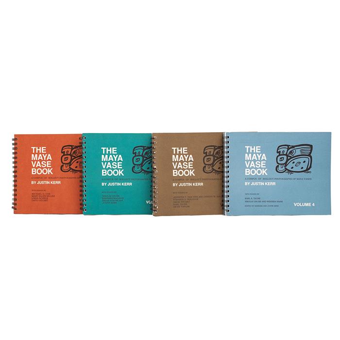 KERR, JUSTIN. THE MAYA VASE BOOK. A CORPUS OF ROLLOUT PHOTOGRAPHS OF MAYA VASES. NEW YORK: KERR ASSOCIATES, 1989 – 1994. 8o. marquilla apaisado. Volumes 1 – 4, con paginación continua 1 – 715. Encuadernados en rústica con espiral. Piezas: 4. Estimado $3,000-4,000