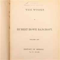 BANCROFT, HUBERT HOWE. THE WORKS – HISTORY OF MEXICO. SAN FRANCISCO: THE HISTORY COMPANY, PUBLISHERS, 1886 - 1888.