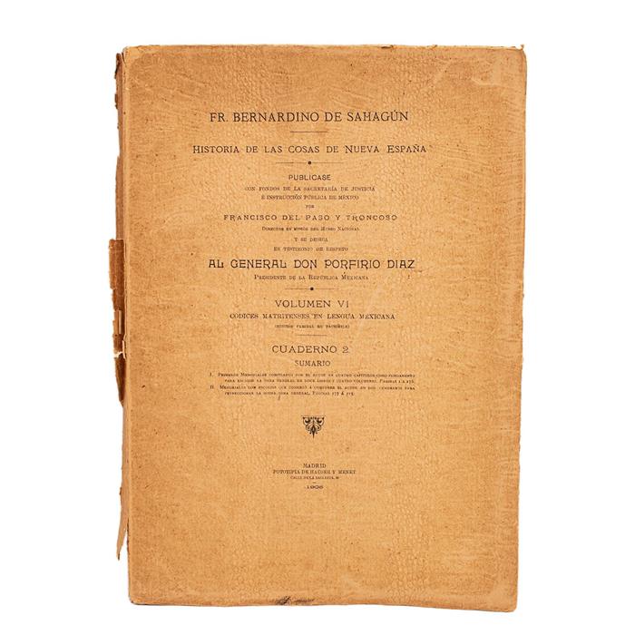 SAHAGÚN, FRAY BERNARDINO DE. HISTORIA DE LAS COSAS DE NUEVA ESPAÑA. MADRID: FOTOTIPIA DE HAUSER Y MENET, 1905.