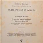 fo. marquilla, 215 p. Edición parcial en facsímile de los Códices Matritenses en Lengua Mexicana (Volumen VI), que se custodian en las Bibliotecas del Palacio Real y de la Real Academia de Historia. Sumario. I. Primeros Memoriales. Páginas 1 – 76. II. Memoriales con Escolios. Páginas 177 a 215. Sello de "Ediciones del Gobierno Mexicano - Sahagún", al reverso de la página 215. Ejemplar por desencuadernarse, lomo por desprenderse. Encuadernado en rústica.