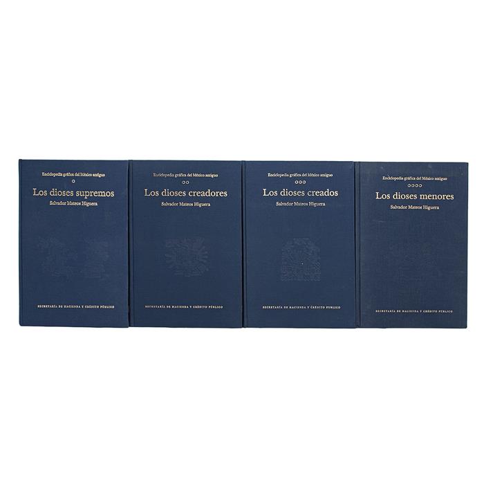 4o. marquilla, 288; 298; 245; 217 p. I. Los Dioses Supremos. II. Los Dioses Creadores. III. Los Dioses Creados. IV. Los Dioses Menores. Primera edición. Profusamente ilustrados. Encuadernados en pasta dura. Piezas: 4.
