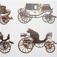 HISTORIA DEL CARRUAJE EN ESPAÑA / ARMORIAL DE APELLIDOS ESPAÑOLES / COLECCIÓN DE TRAJES DE ESPAÑA. a) Andrada-Wnderwilde Quadras, Teresa. Historia del Carruaje en España. Barcelona: Grupo Fomento de Construcciones y Contratas, 2005. 4o. marquilla, 421 p. Encuadernado en pasta dura. b) Schnieper Campos, Jacques-A. y Rosado Martín, Félix. Armorial de Apellidos Españoles. Madrid: Auryn Editorial, 1999. 4o. marquilla, Encuadernado en pasta dura. c) Cruz Cano y Holmedilla, Juan de la. Colección de Trajes de España, Tanto Antiguos como Modernos. Madrid: Fundación Universidad- Empresa Turner, 1988. 4o. marquilla, 28 p. + 85 láminas. Facsímil del publicado en Madrid, 1777. Encuadernado en pasta dura. Total de piezas: 3. Estimado $800-1,500