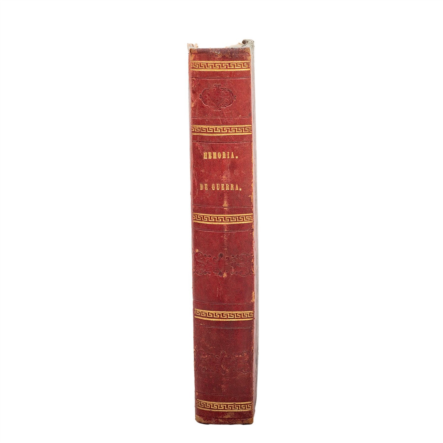 MEMORIA QUE EL C. GENERAL DE DIVISIÓN IGNACIO MEJÍA MINISTRO DE GUERRA Y MARINA PRESENTA AL 7o. CONGRESO CONSTITUCIONAL. MÉXICO: IMPRENTA DEL GOBIERNO, 1873. 4o. marquilla, 822 p. Ex Libris de antiguos propietarios (nota manuscrita): Juan Madero, Alicia Madero de Elbridge. Pastas gastadas. Algunas láminas con rasgaduras. Encuadernado en pasta dura, lomo en piel. Estimado $3,000-9,000