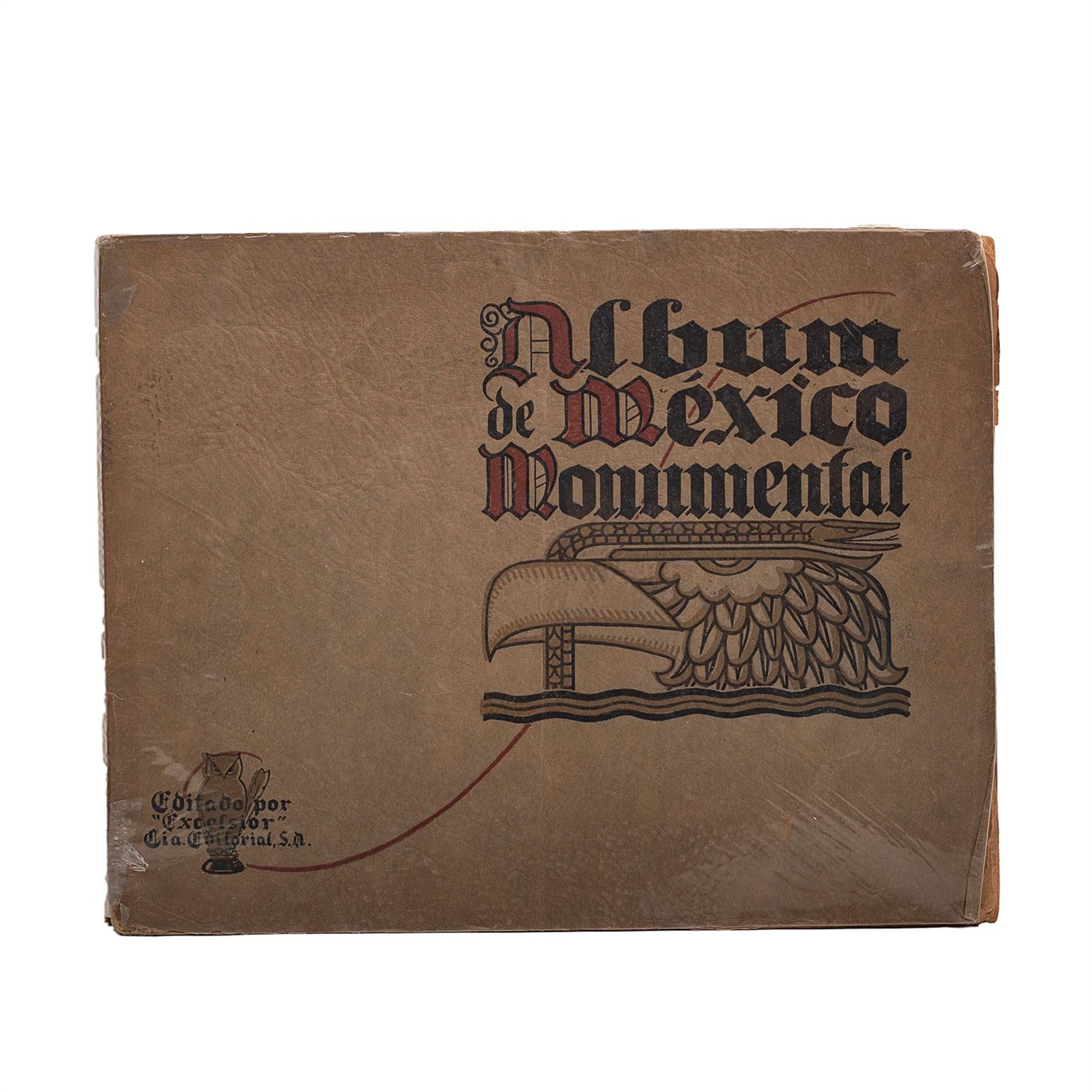 ÁLBUM DE MÉXICO MONUMENTAL. MÉXICO ARQUEOLÓGICO - MÉXICO COLONIAL - MÉXICO MODERNO. MÉXICO: EDITADO POR "EXCELSIOR" CÍA., SIN AÑO. 4o. marquilla apaisado, 176 p., en sepia. Ilustraciones de: Foto Osuna, Foto Ocampo, Foto "La Rochester", Foto García, Foto Bolaños, Foto Kahlo, Foto R. G. Acevedo, Foto I. Reyes, Foto A. Garduño, Foto Lupercio, Foto J. A. González, Foto Liaño, Foto Brehme, Foto Ríos, Foto Monroy, Foto Patiño y Foto F. de P. Carbajal. Pequeñas rasgaduras. Encuadernado en rústica. Estimado $800-1,500