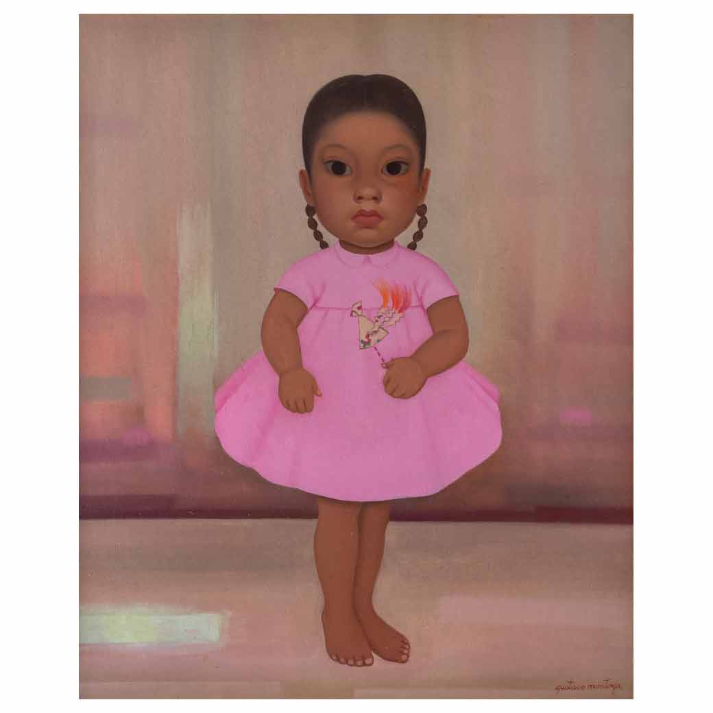 Subasta 1134, Lote # 20 GUSTAVO MONTOYA (Ciudad de México, 1905 - Ciudad de México, 2003) Niña en rosa, de la serie Niños Mexicanos Firmado al frente. Firmado y fechado México 1994 al reverso Óleo sobre tela Con etiquetas de Galería Arte de Coleccionistas e Inverarte. Presenta restauración. Gustavo Montoya es considerado un poeta de la pintura, moderno, perfeccionista y emocional. Si bien comenzó su formación de manera académica, optó por tomar su propio camino, viajando a Estados Unidos y algunos países de Europa, donde incluso trabajó y dio a conocer su obra con gran éxito. En dichas experiencias enriqueció su bagaje artístico y lo unió a su herencia mexicana, creando así un estilo pictórico personal e interesante. En su obra podemos apreciar una decantación por el lenguaje de la modernidad, logrando ejecutar piezas de composiciones limpias, paleta de color delicadamente seleccionada y falsas perspectivas con el fin de apreciar la totalidad de los elementos expuestos. Fuentes consultadas: RULFO, Juan et al. Gustavo Montoya. México. Litógrafos Unidos S. A., 1981, pp. 45-62 y LARA ELIZONDO, Lupina. Resumen. Pintores y pintura mexicana. México. Promoción de Arte Mexicano, año 4, no. 40, julio - agosto 1999, pp. 10-12. 56 x 45.5 cm Estimado $300,000-400,000