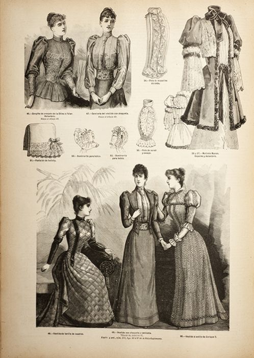 Publica las últimas modas de París en excelentes grabados - Artísticos figurines iluminados - Considerable número de patrones trazados al tamaño natural - Modelos para toda clase de labores y bordados - Crónicas - Novelas, etc., etc.