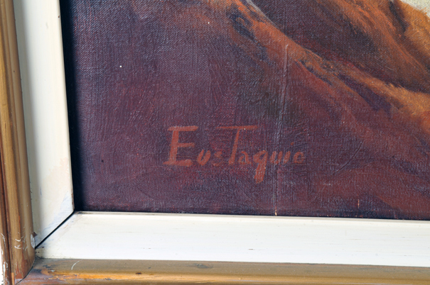 Subasta 762T, Lote # 266 Eustaquio (México ?) Marina. Óleo sobre tela. Enmarcado. Firmado. Dimensiones: 69 x 120 cm. Estimado $5,000-7,000